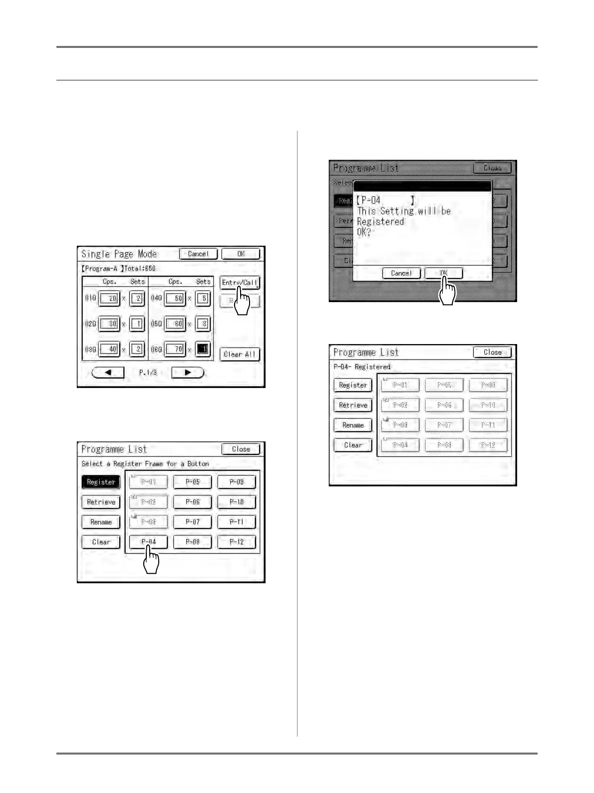 • After saving the Programme, touch [Close] on