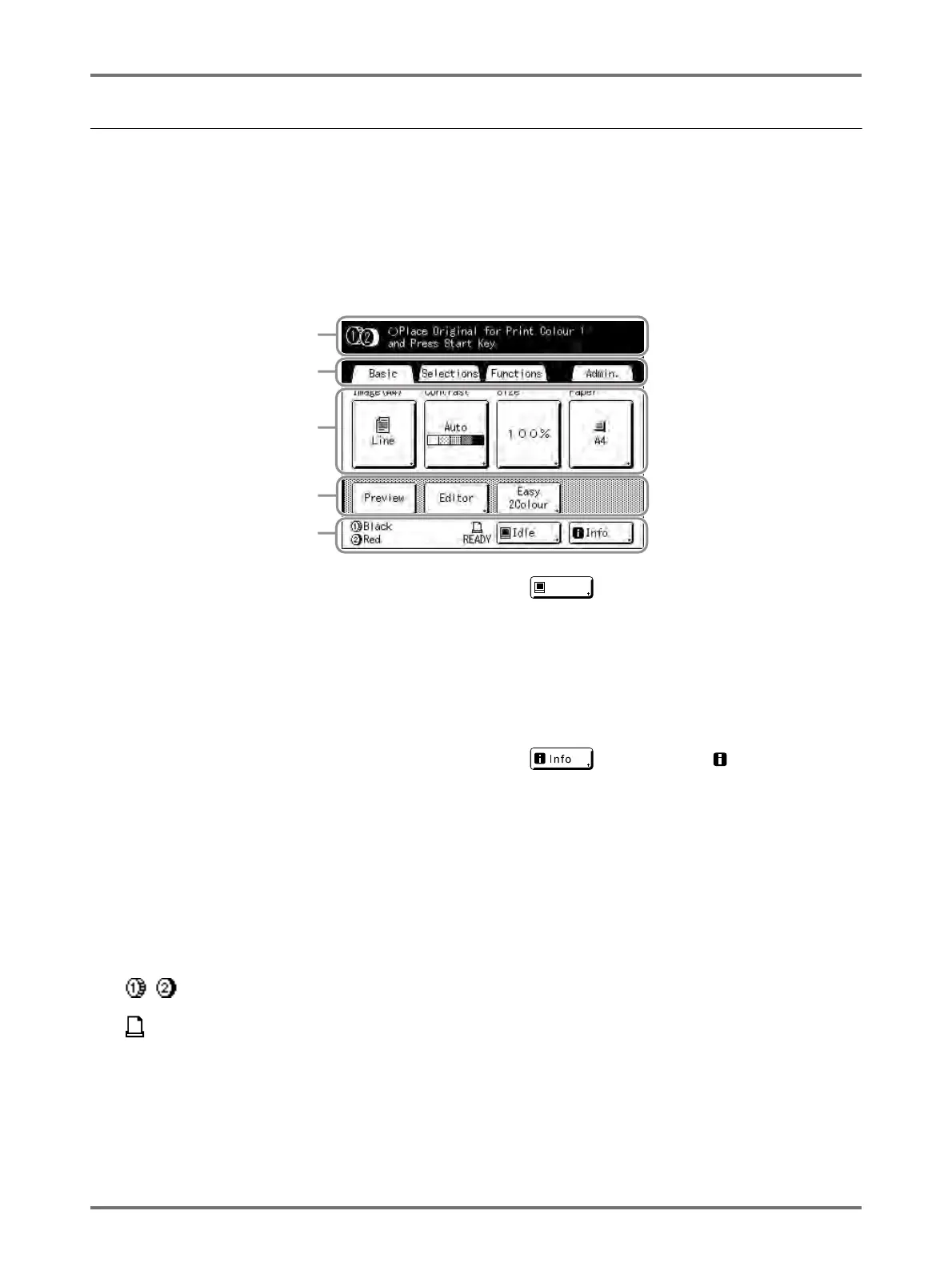Displays the printer status and operational instructions. If