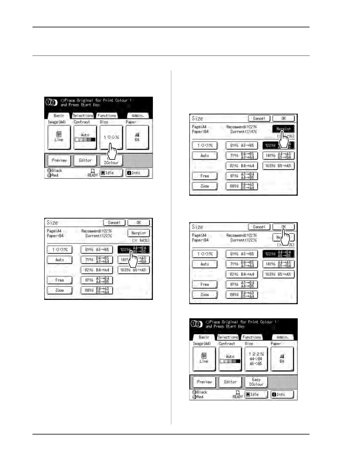 Enlarging/Reducing Originals [Standard Ratio] [Free] [Margin+] [Zoom]