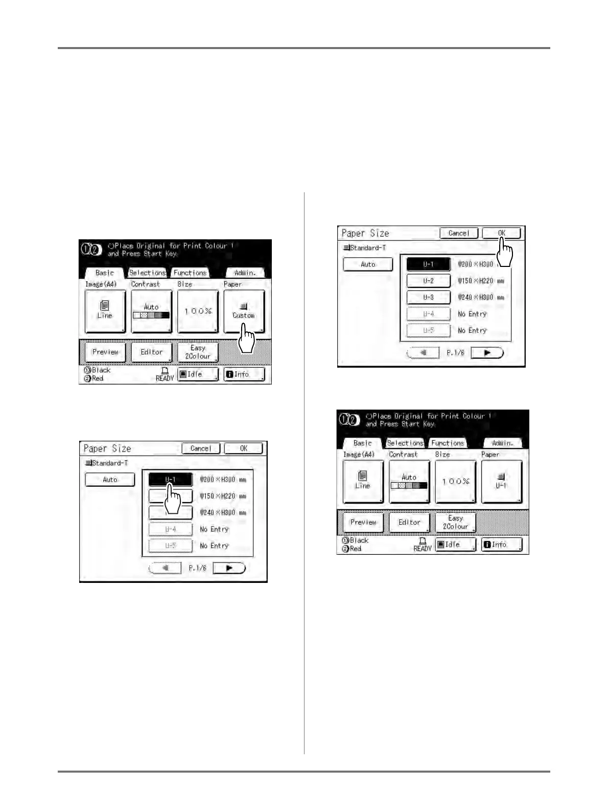 • Custom paper size must be registered on the Admin. screen. Failure to do so may make an incomplete master.