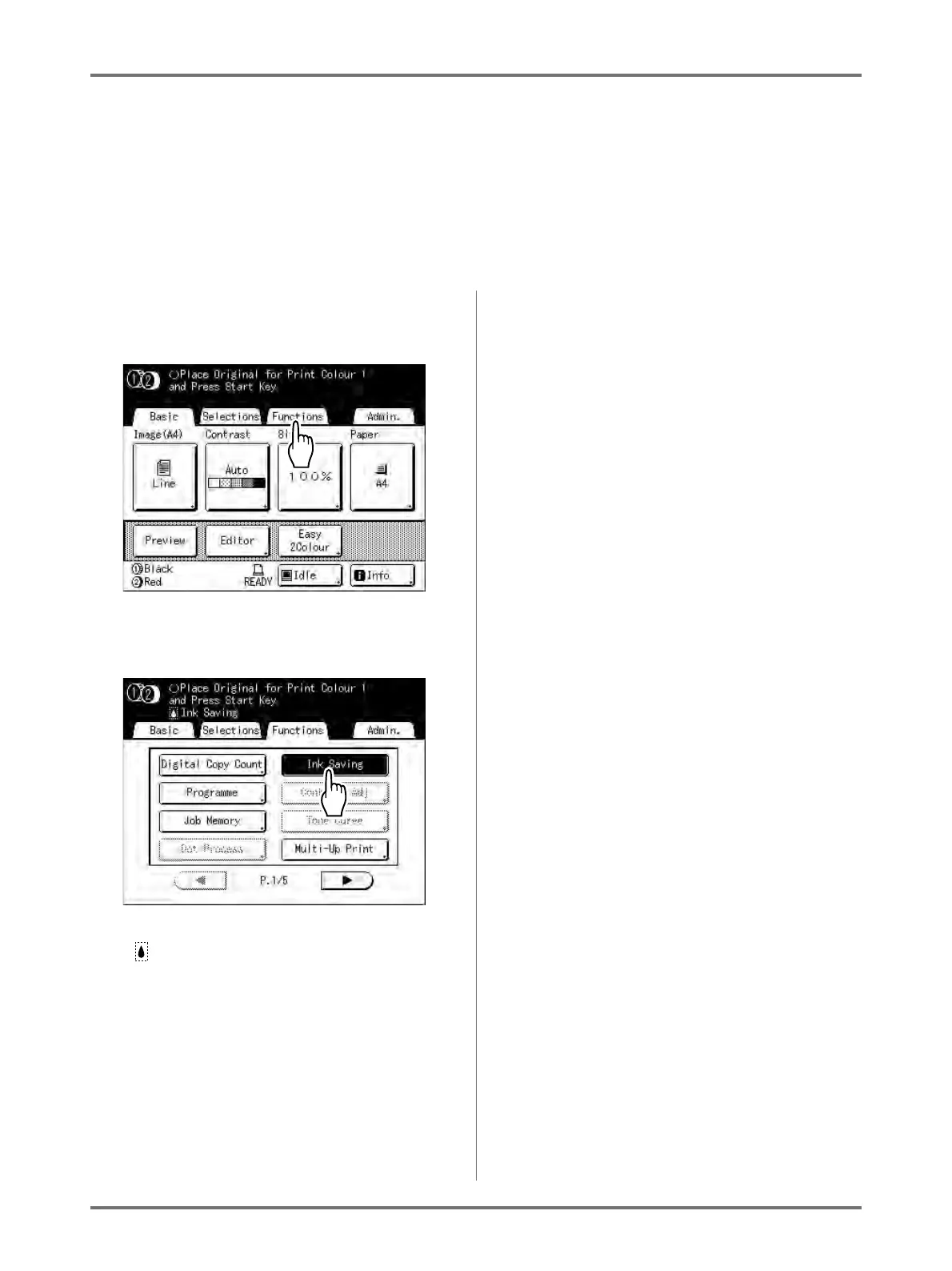 • “Contrast” and “Print Density Adjustment” functions are not available when [Ink Saving] is selected.