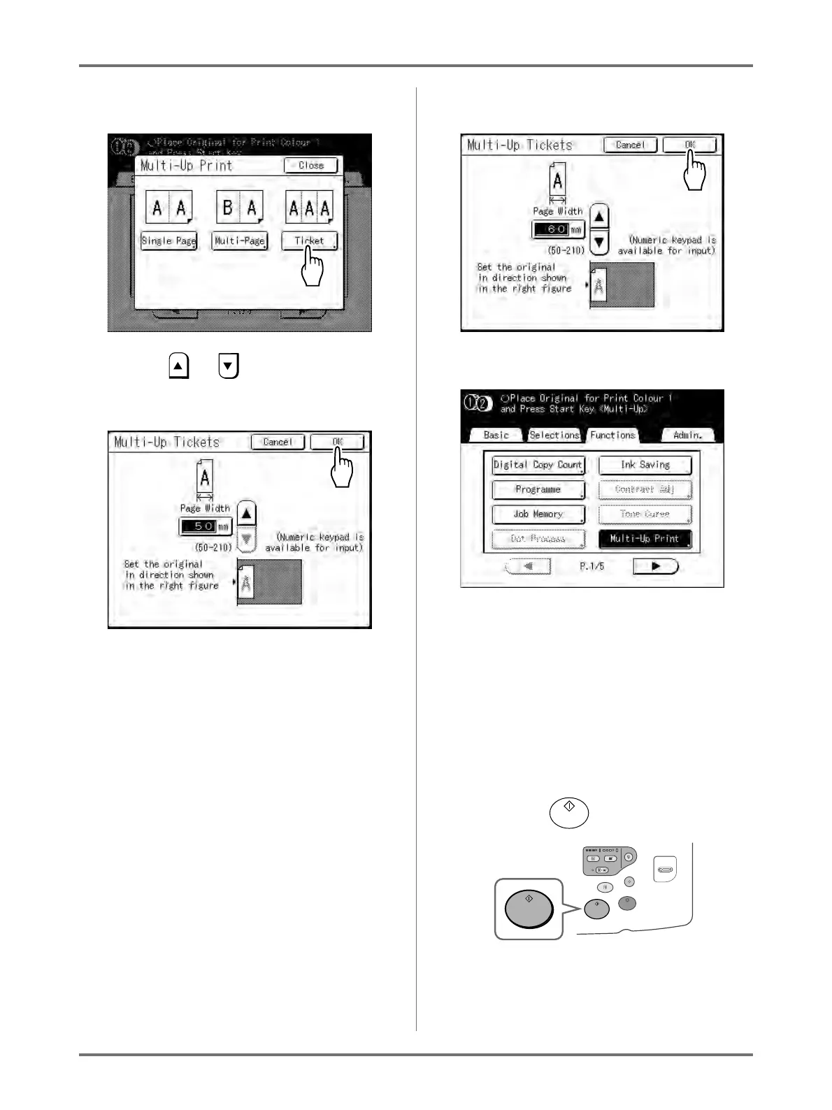 • Specify the ticket width after enlarging/reduc-
