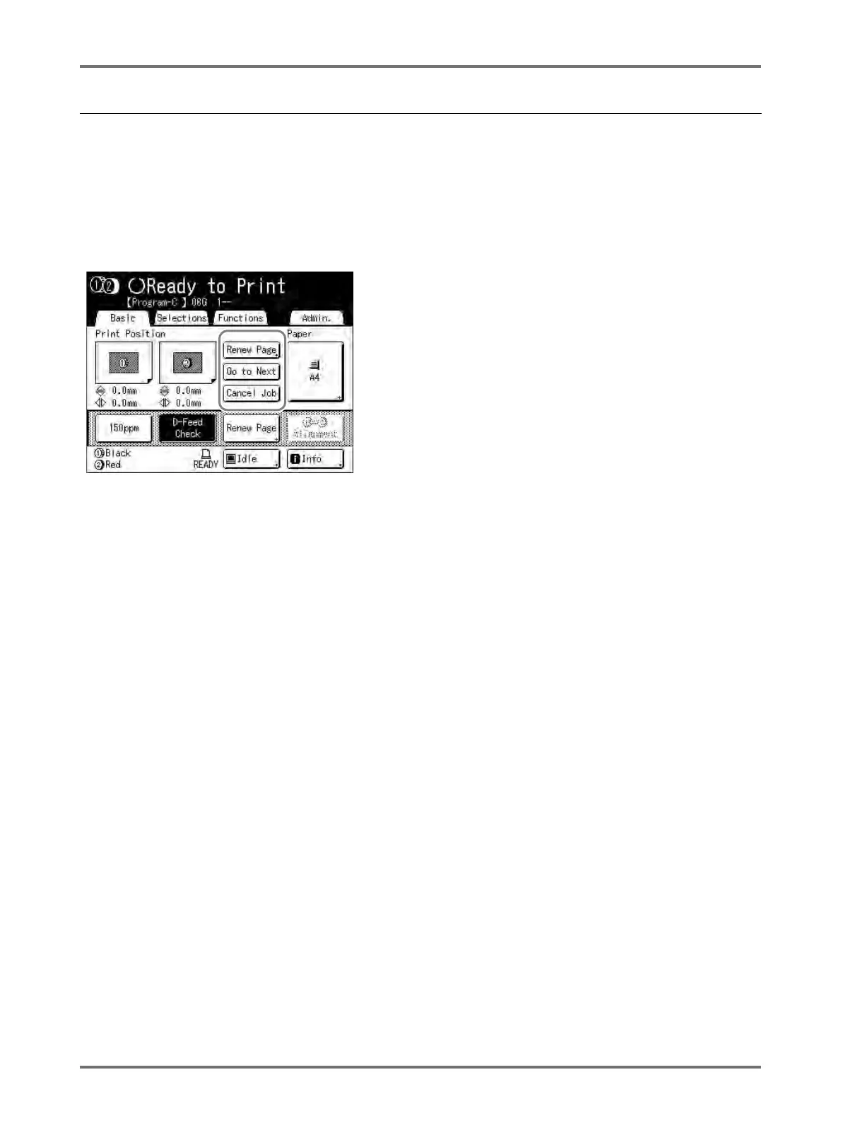 [Next Page] or [Go to Next]: Stops current print job, skips to the next original, set or group.