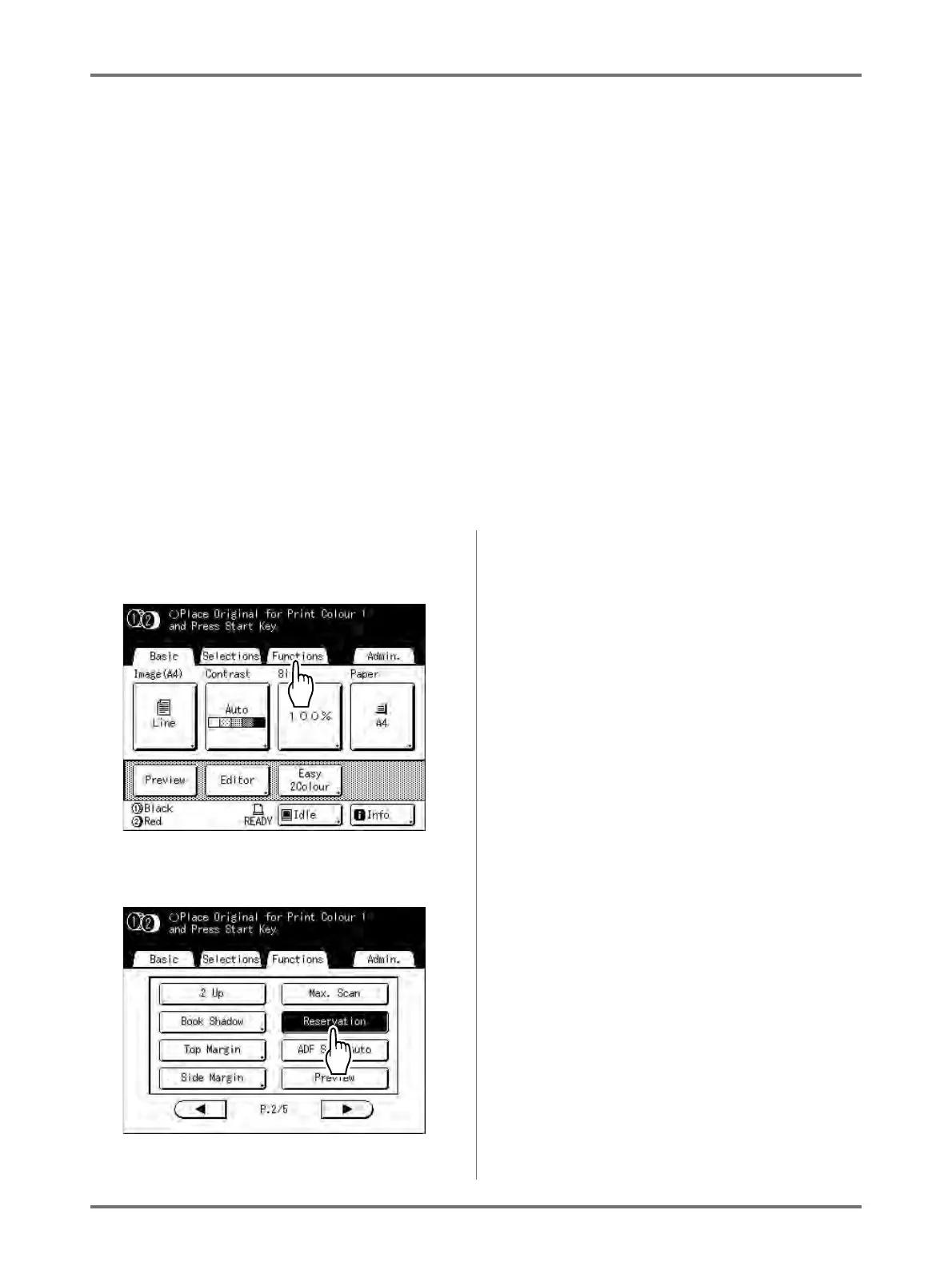 • Select from 5, 10, or 30 minutes as the “Reservation” period on the Admin. screen. The factory default is 5 minutes.