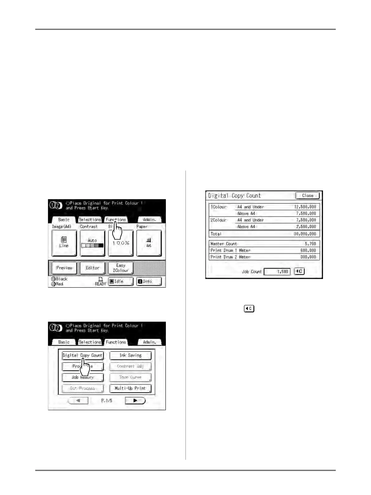 For example, to keep track of the number of prints made in a day, set “Job Count” to 0 in the morning, and check the