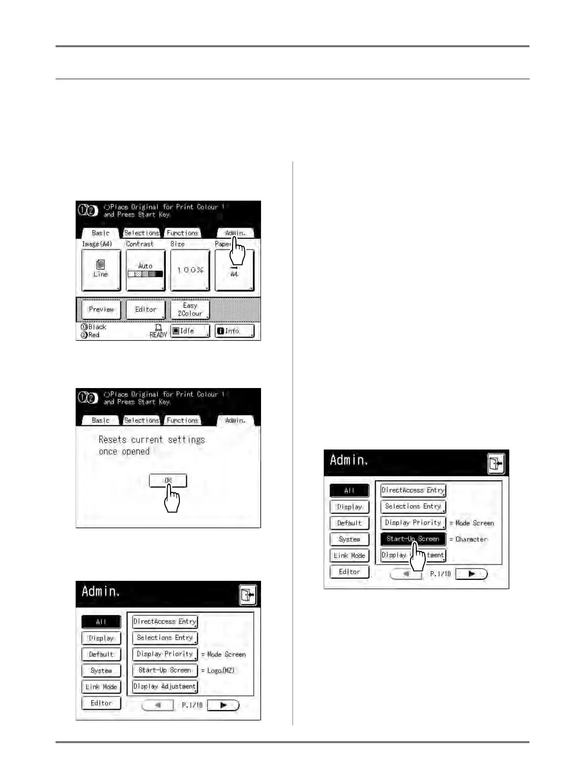 • On the Admin. screen, the current setting is displayed on the right side of each button.