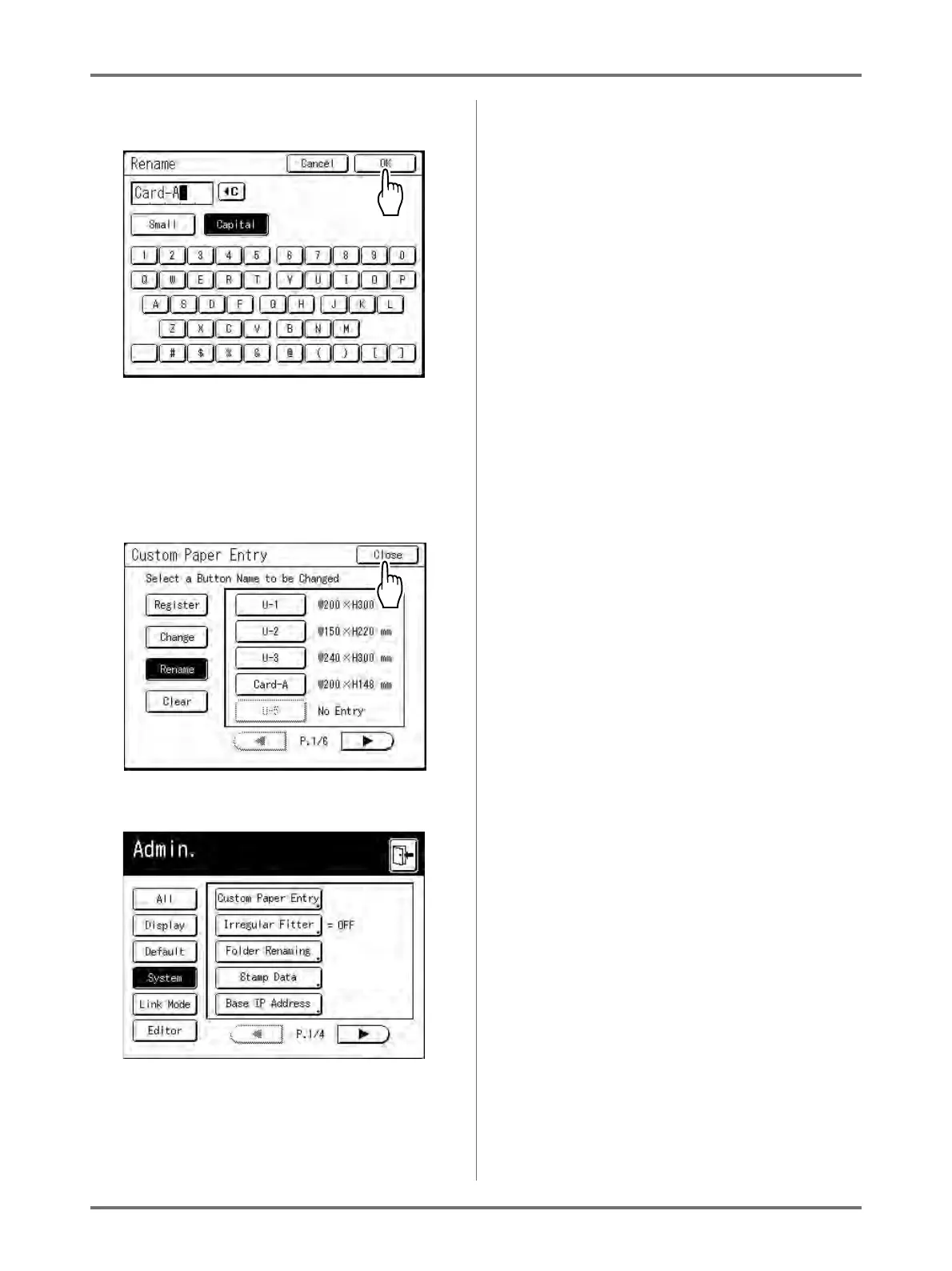 tom Paper Entry screen, the machine switches