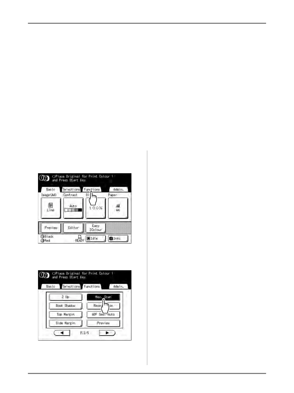 By selecting “Max. Scan”, maximum printing area will apply to the scanned image, regardless of the print paper size