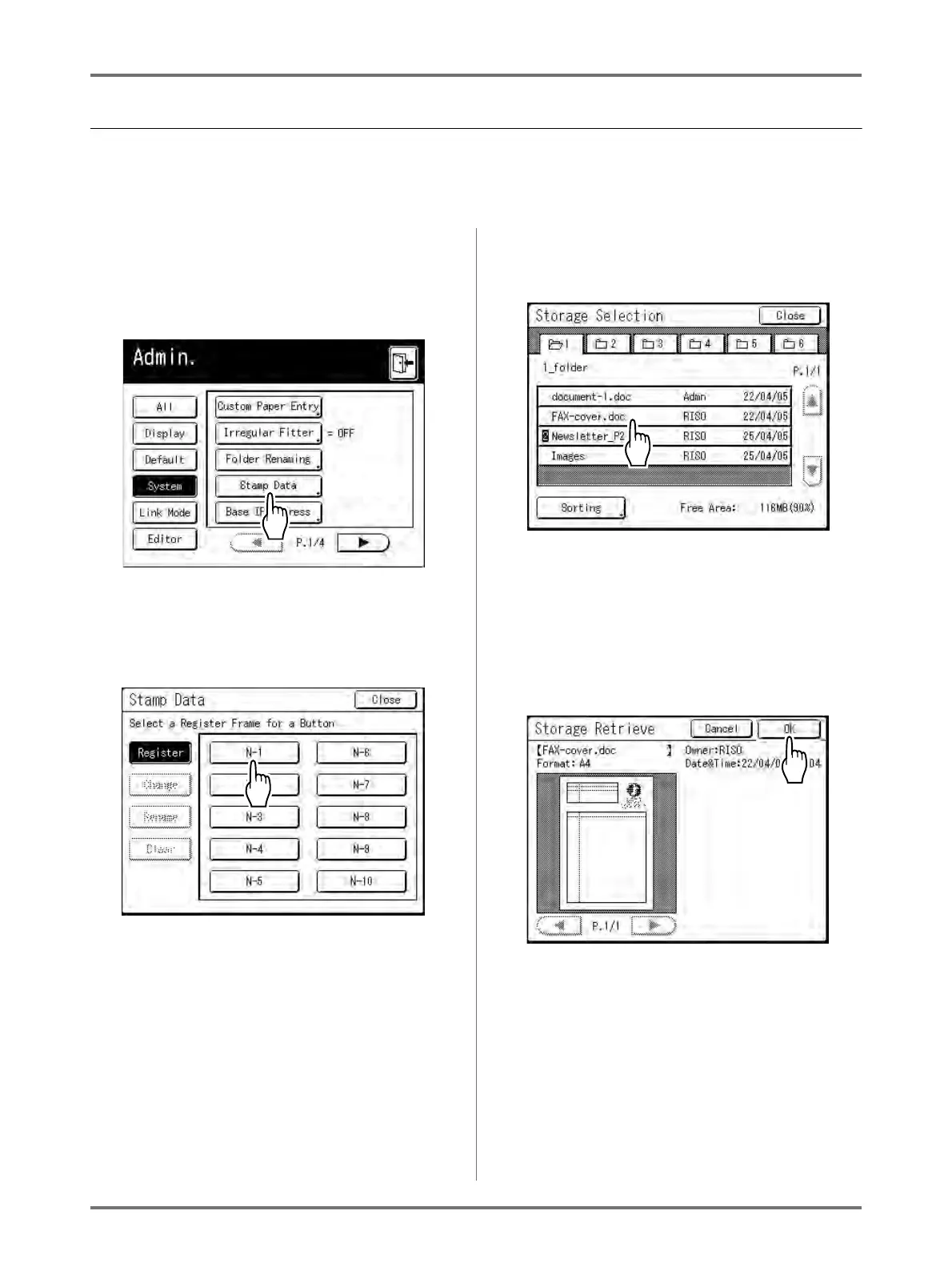 Touch [Stamp Data] on the Admin.
