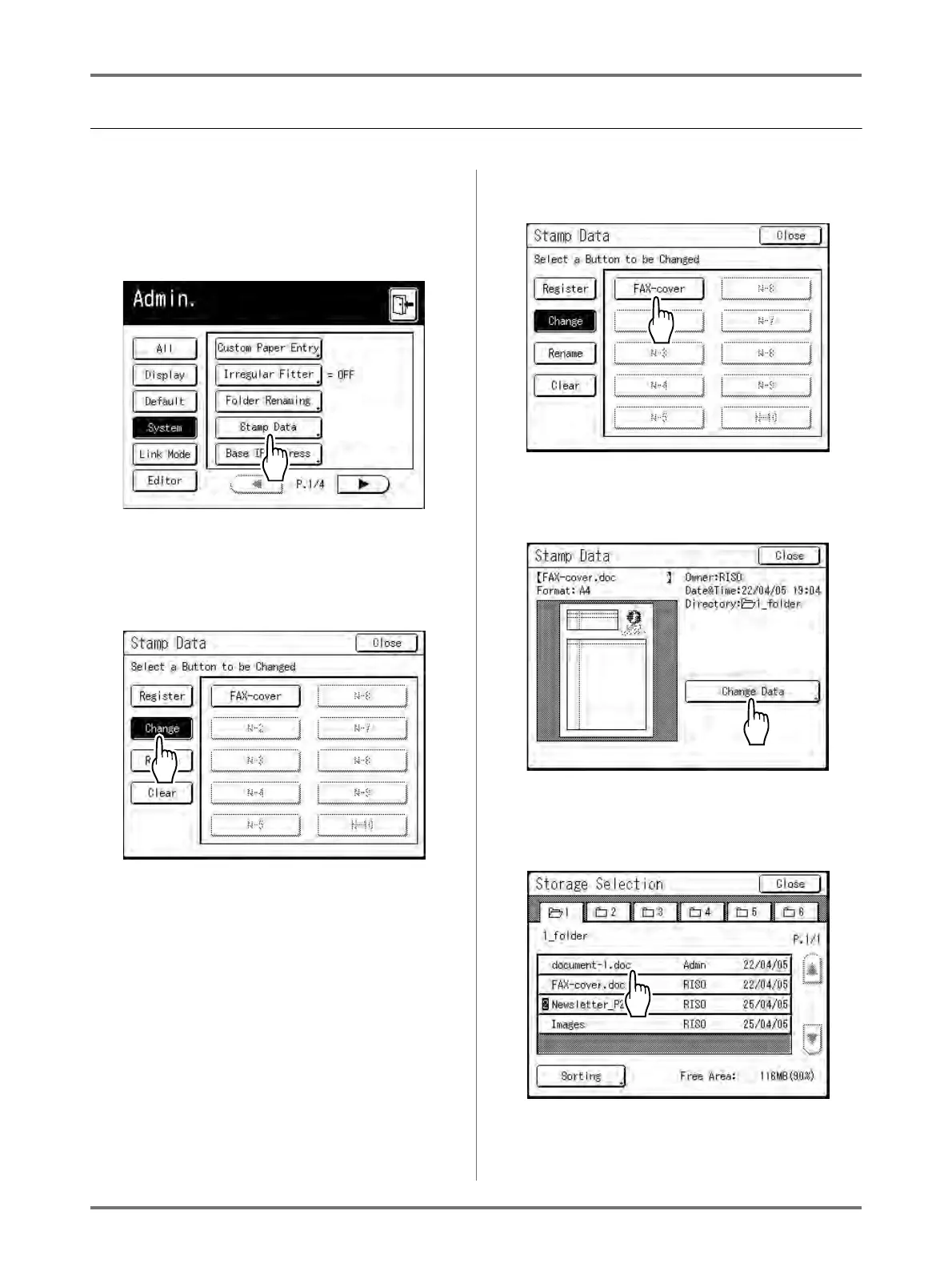 Touch [Stamp Data] on the Admin.