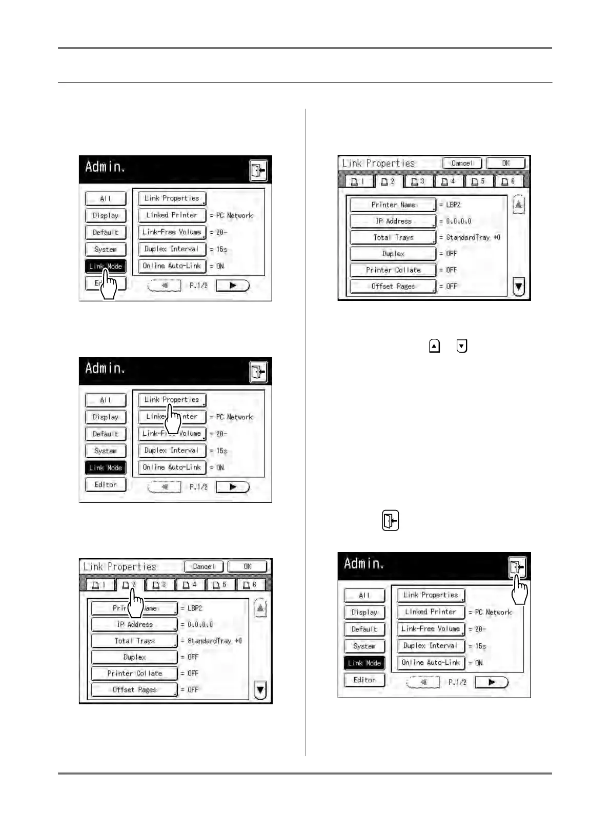 Touch [Link Mode] on the Admin.