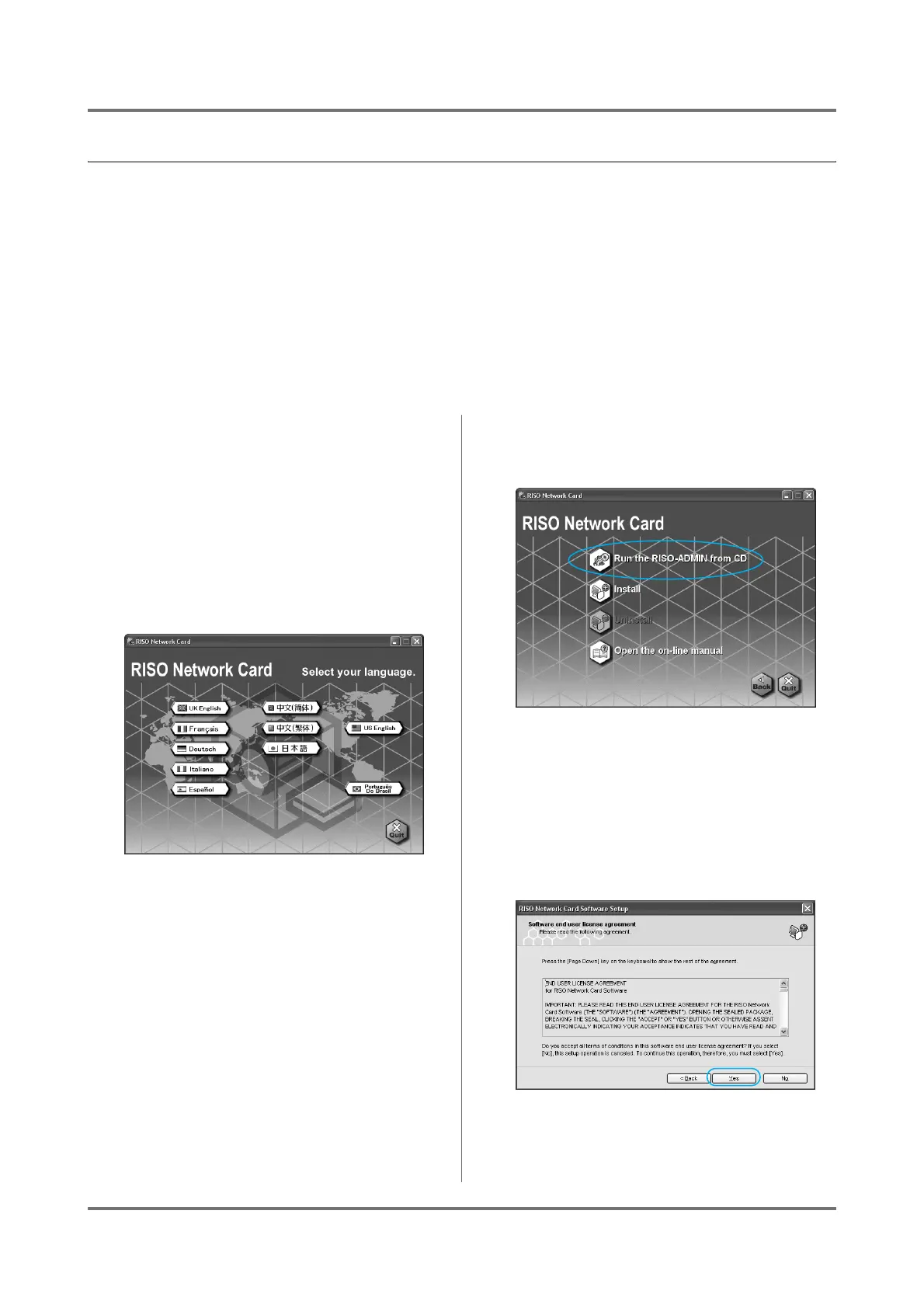 Using RISO-ADMIN from the “Run the RISO-ADMIN from CD” menu