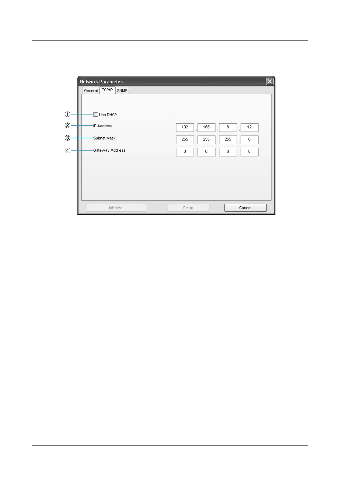 The network configuration of a RISO printer which is required for TCP/IP communication can be specified here.