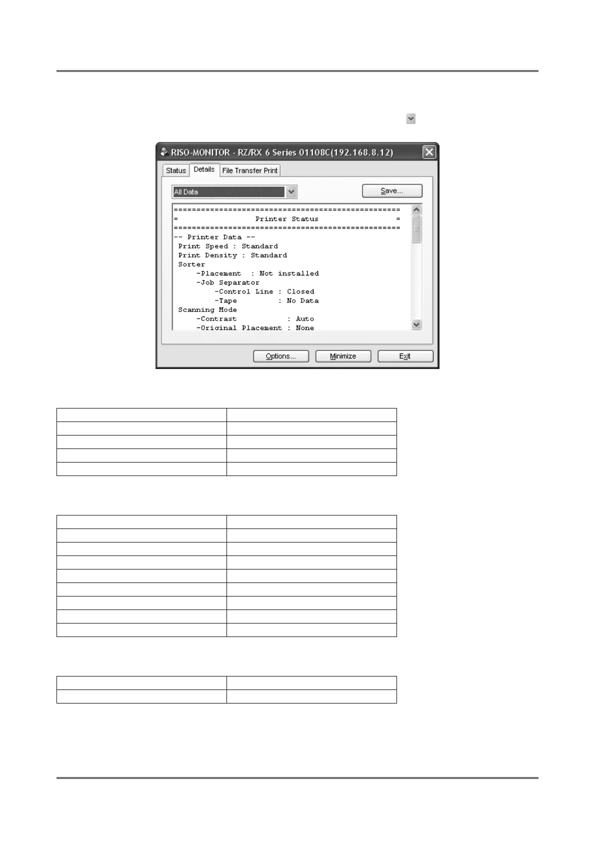 The operation configuration of the selected RISO printer can be checked here. The displayed information can be