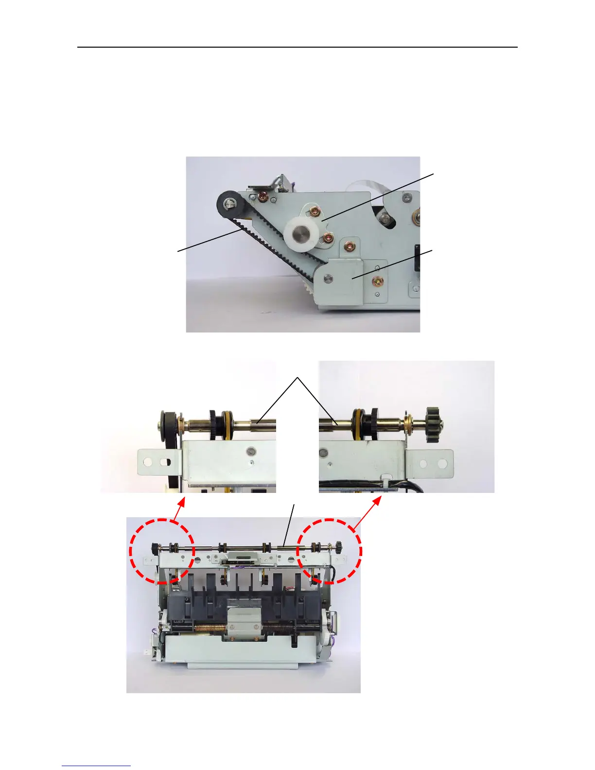 (3) Remove the E-rings, bearings, gears, and pulleys from both sides of the master removal roller