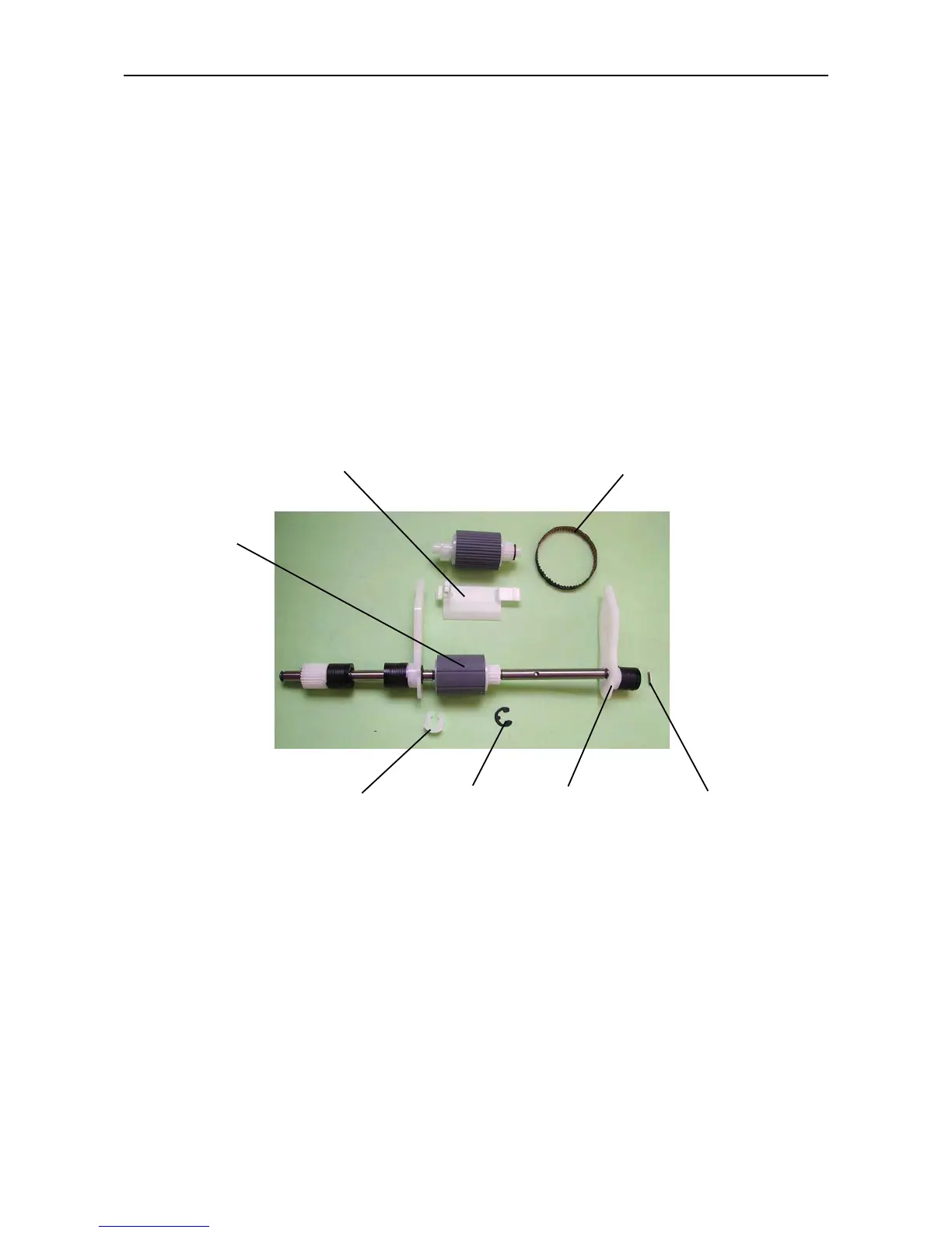 original stripper roller [B] to the left, and then remove the right-hand E-ring [D]. Move the pickup