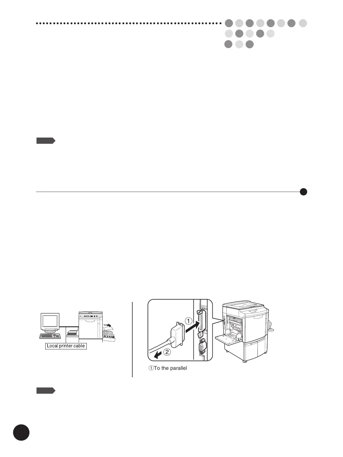 your RISO Printer, connect the standard parallel printer cable, IEEE 1284-compliant