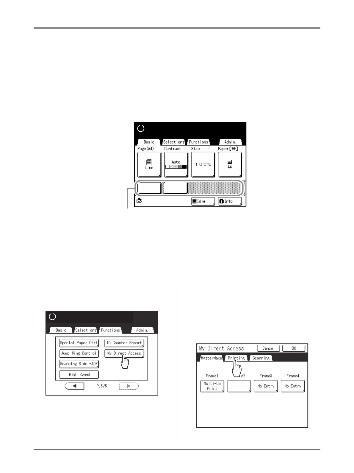 • If “My Direct Access” is not set, the functions registered via the usual methods are displayed in the Direct Access