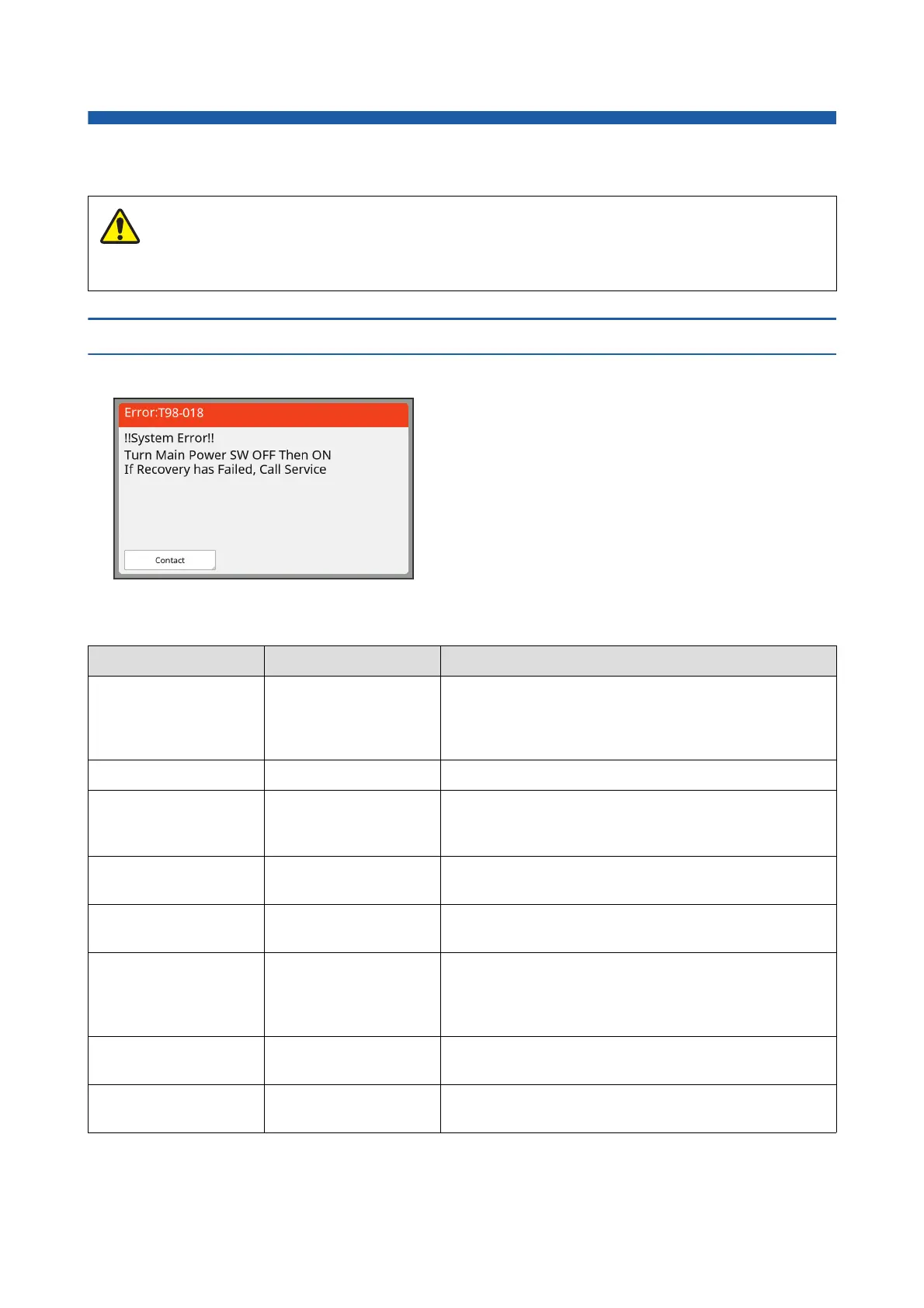 T00-0000 Service call error This type of error is displayed when an error that requires