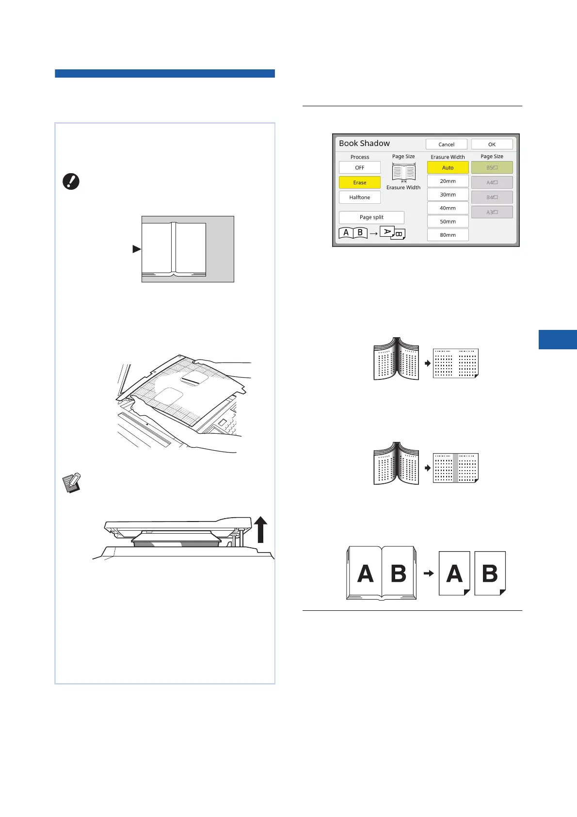 BWhen scanning a thick book, raise the