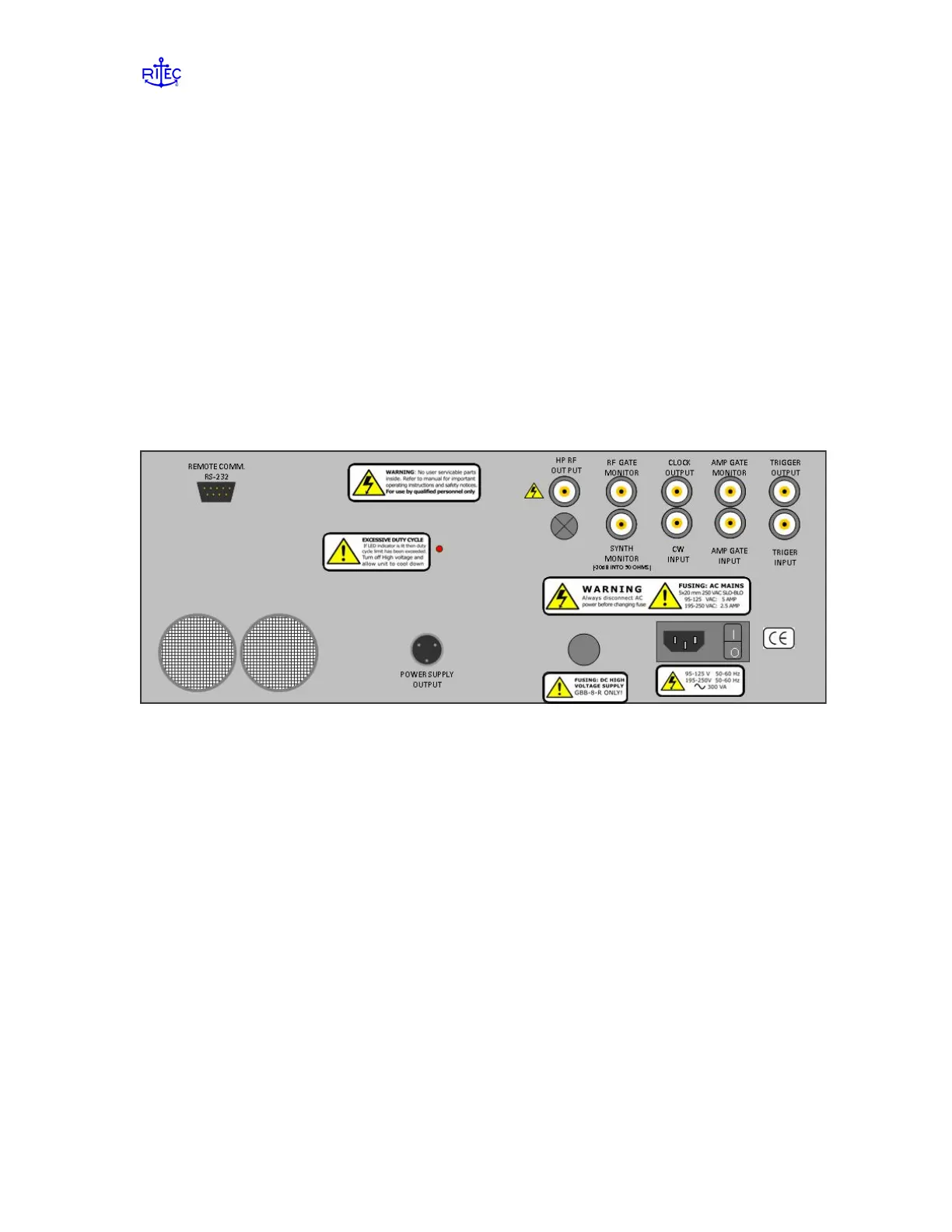 100) than the voltage present on the High power RF pulse output. Connect this to an