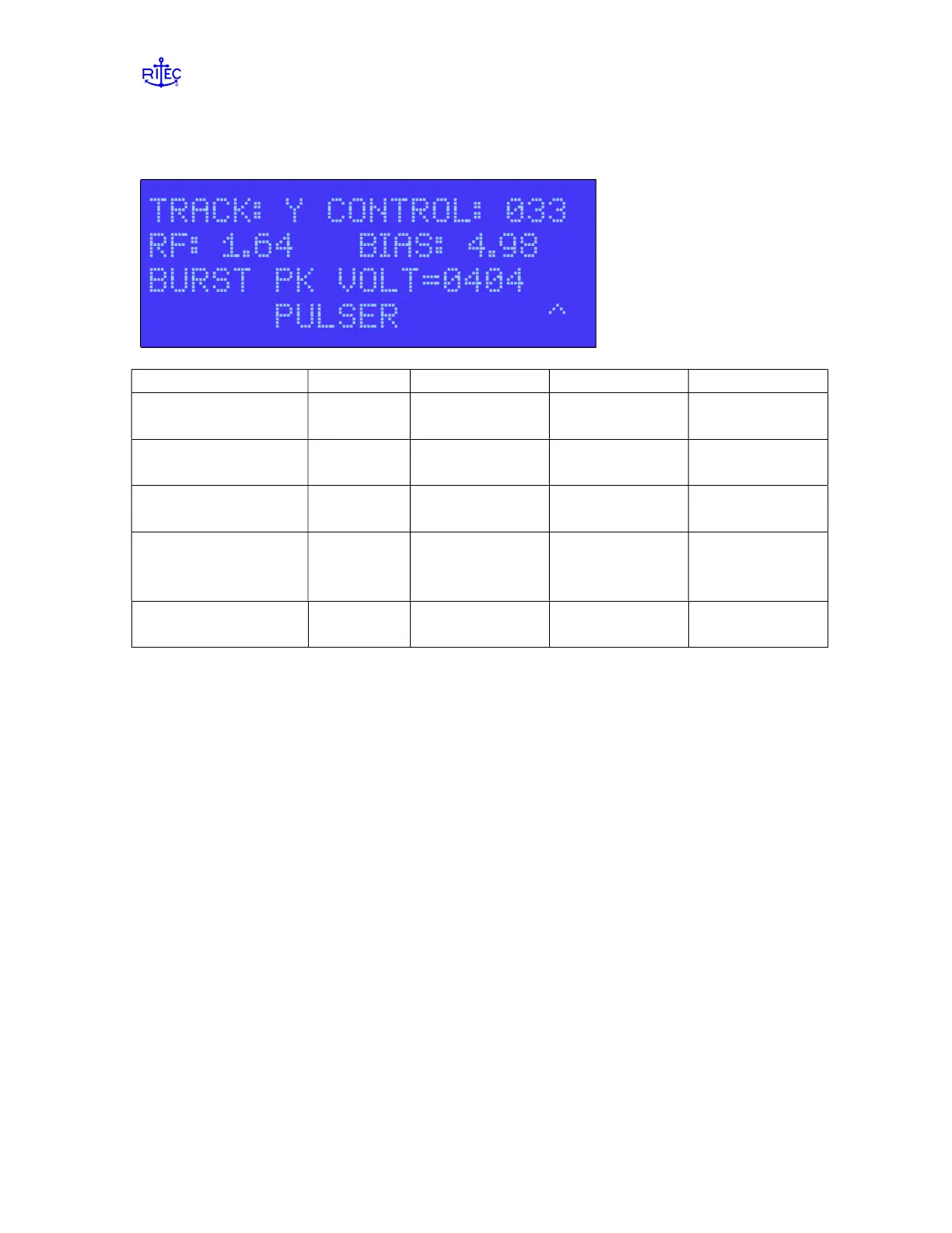 With TRACK set to N (o) the operator can access the RF and BIAS data fields on the