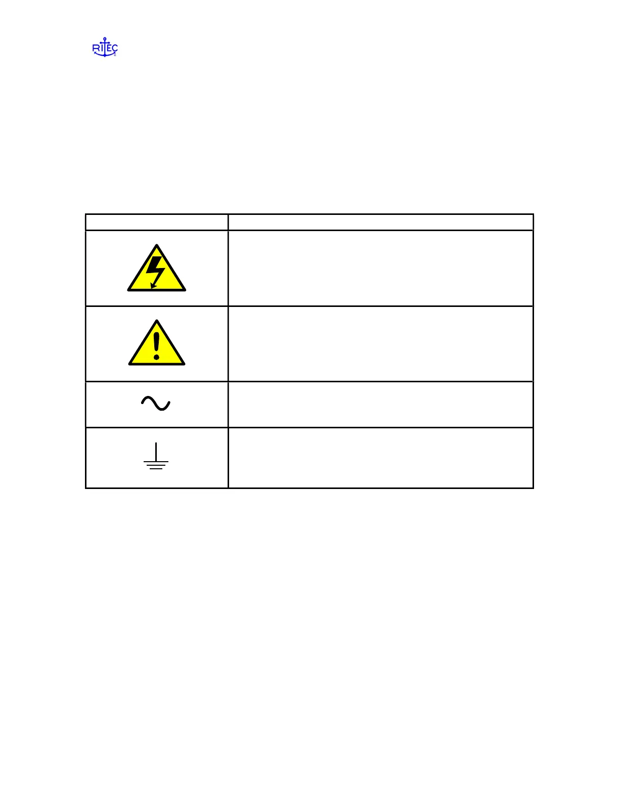 The table below shows the symbols that you may see on the RPR-4000 instrument.