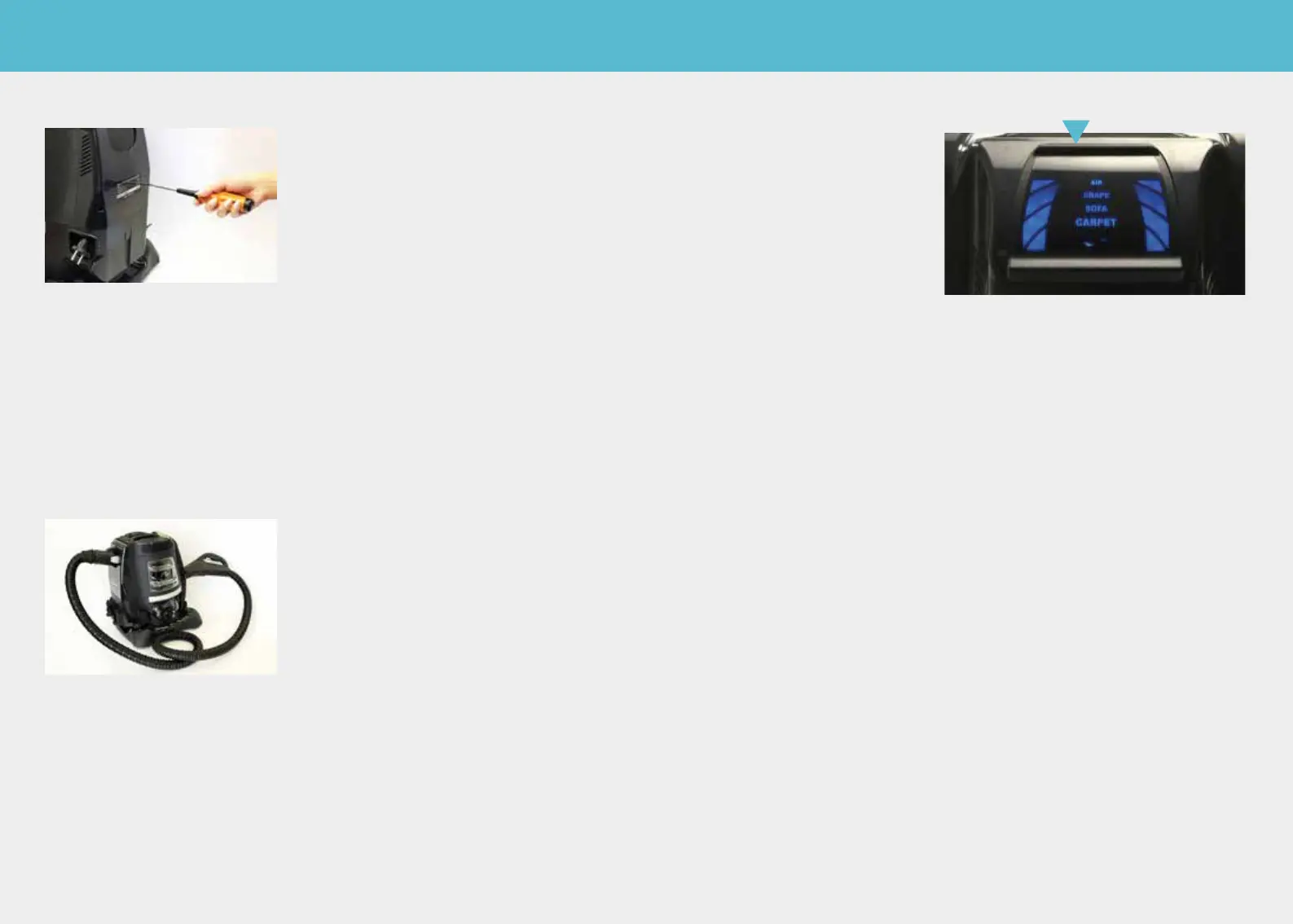of the Ritello; turn the unit on and shake the hose to help any dirt stuck in the hose