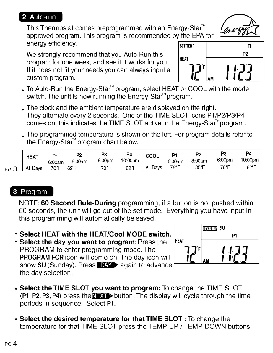 ritetemp 8050 - Programming the Thermostat; Auto-Run Energy-Star Program; Select Time Slot for Programming; Set Temperature for Time Slot