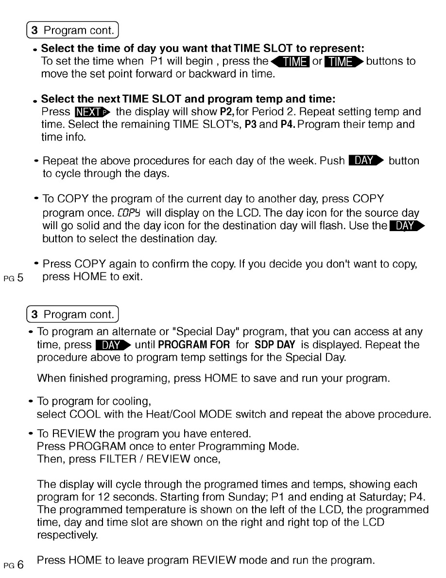 ritetemp 8050 - Advanced Programming and Review; Set Time for Time Slot; Program Next Time Slot and Day; Copy Program to Other Days