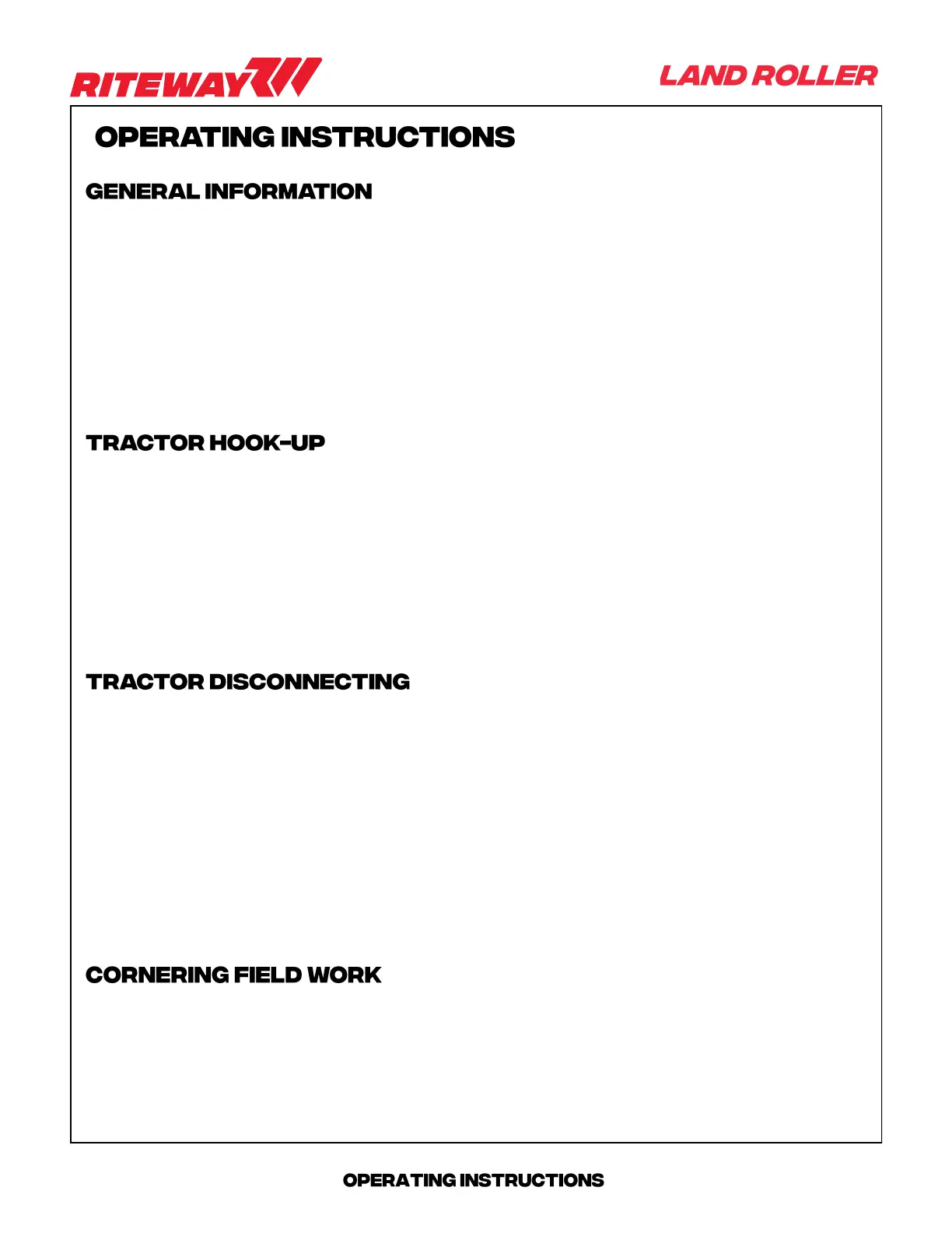 NOTE: Maximum field operating SPEED OF the LAND ROLLER is 8 mph (13 km/h).