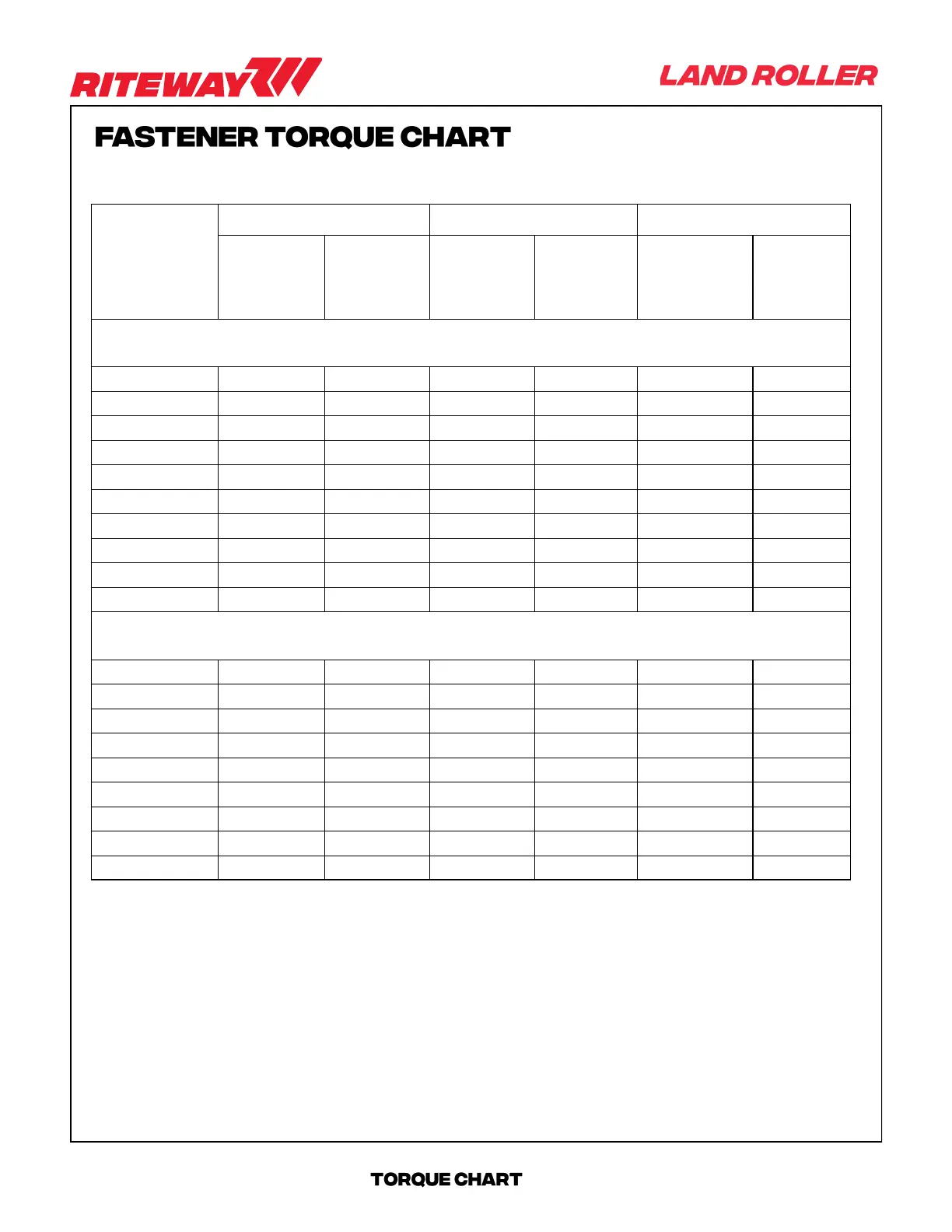 3/8-16 3,200 lbs 20 ft-lbs 4,950 lbs 31 ft-lbs 6,950 lbs 44 ft-lbs