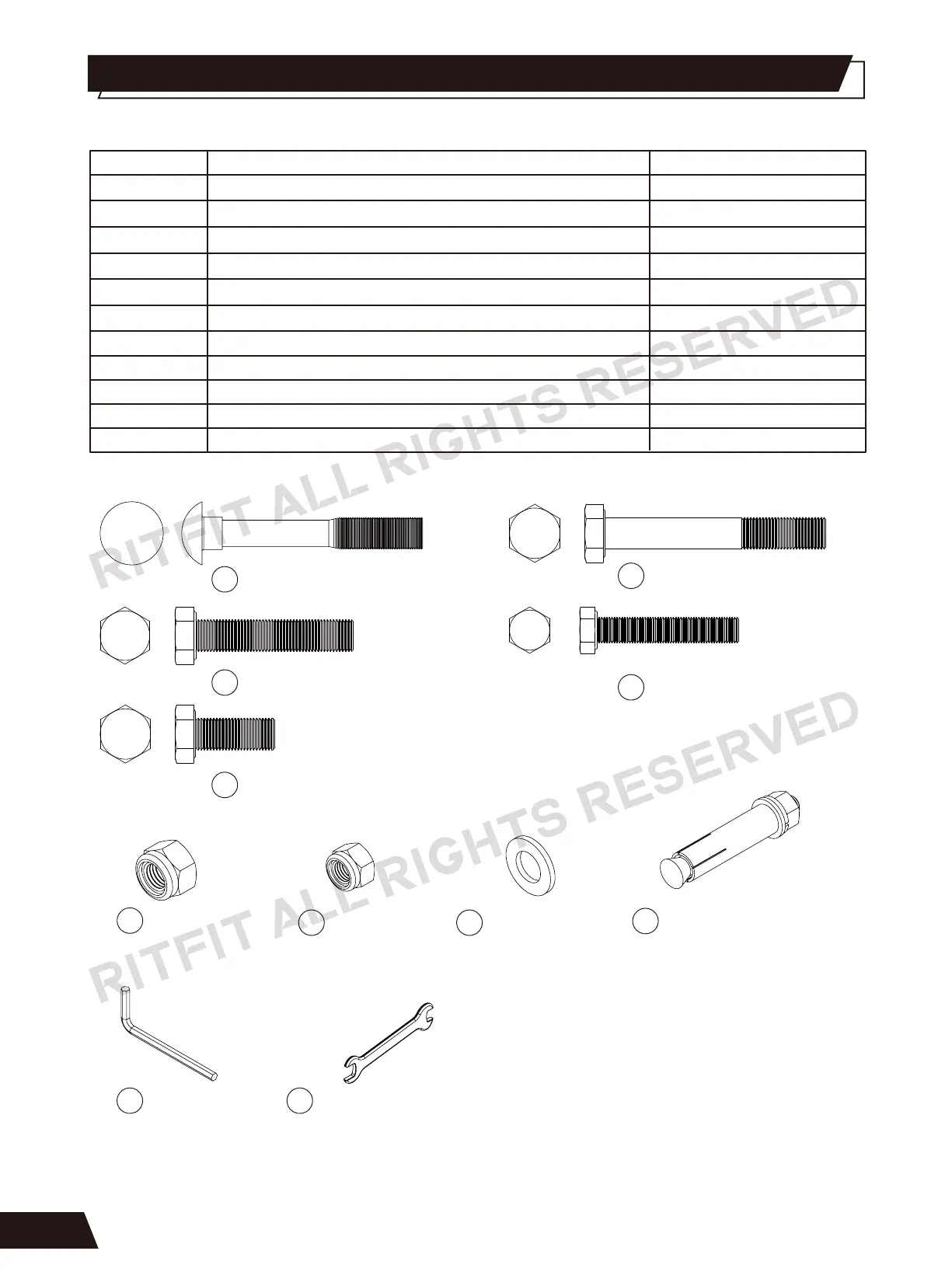 RITFIT PPC03A - Power Cage Parts List; Fasteners and Tools
