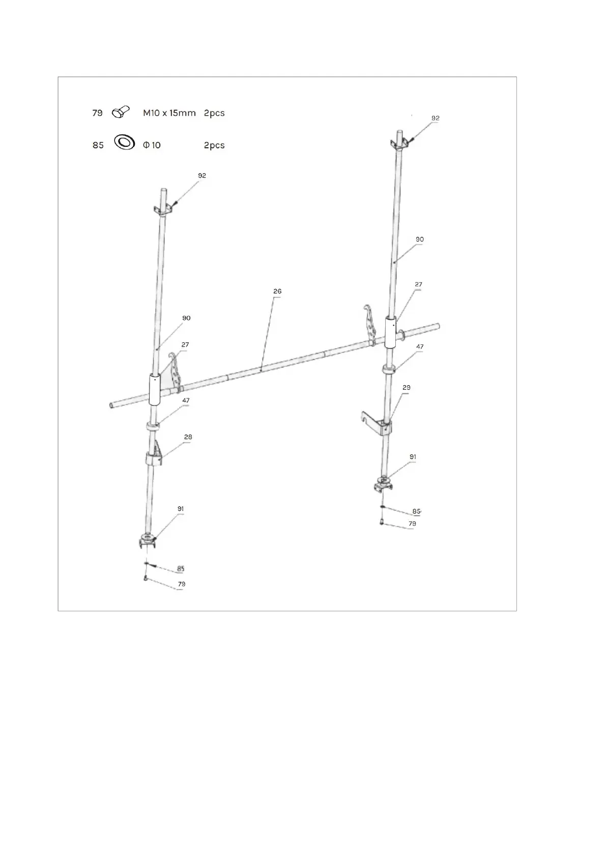 6. Place 2x part (#91) onto 2x part (#90) and secure using 2x part (#85),