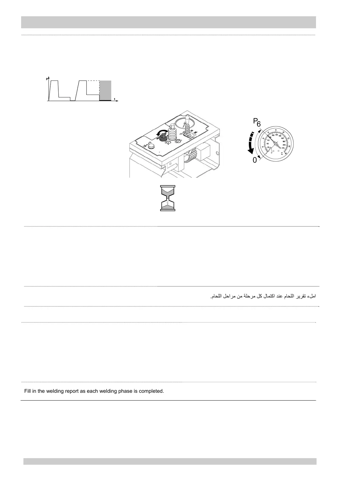 Fill in the welding report as each welding phase is completed.