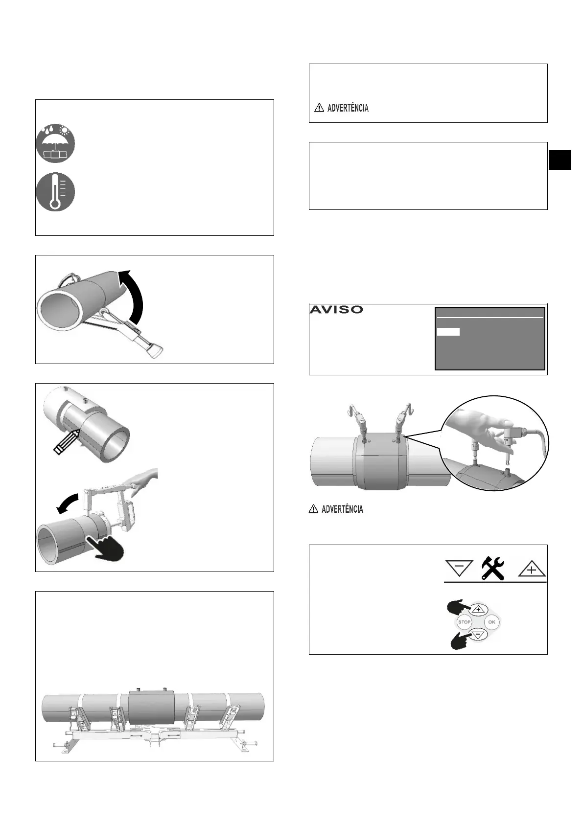 de alinhamento e a desconexão dos cabos de soldagem