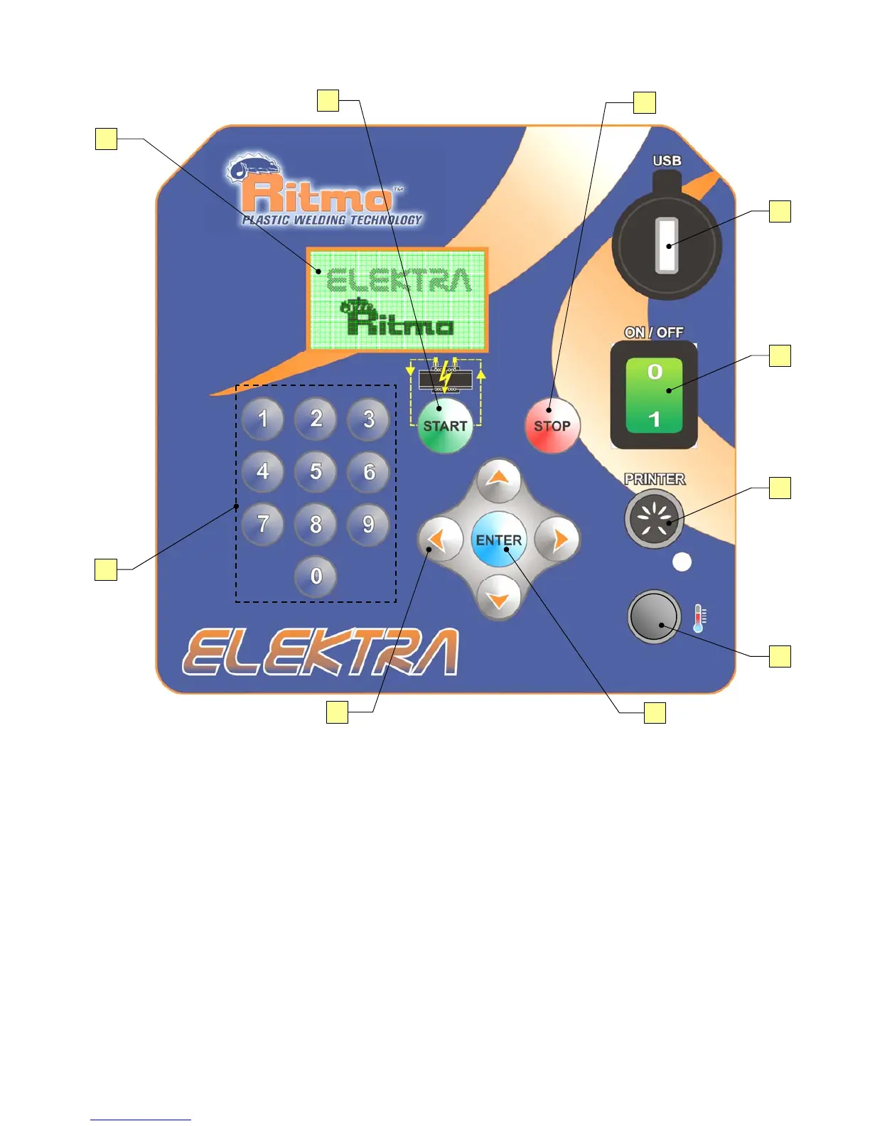 I. STOP Key (Exits from menu without saving data. Stops fusion process )