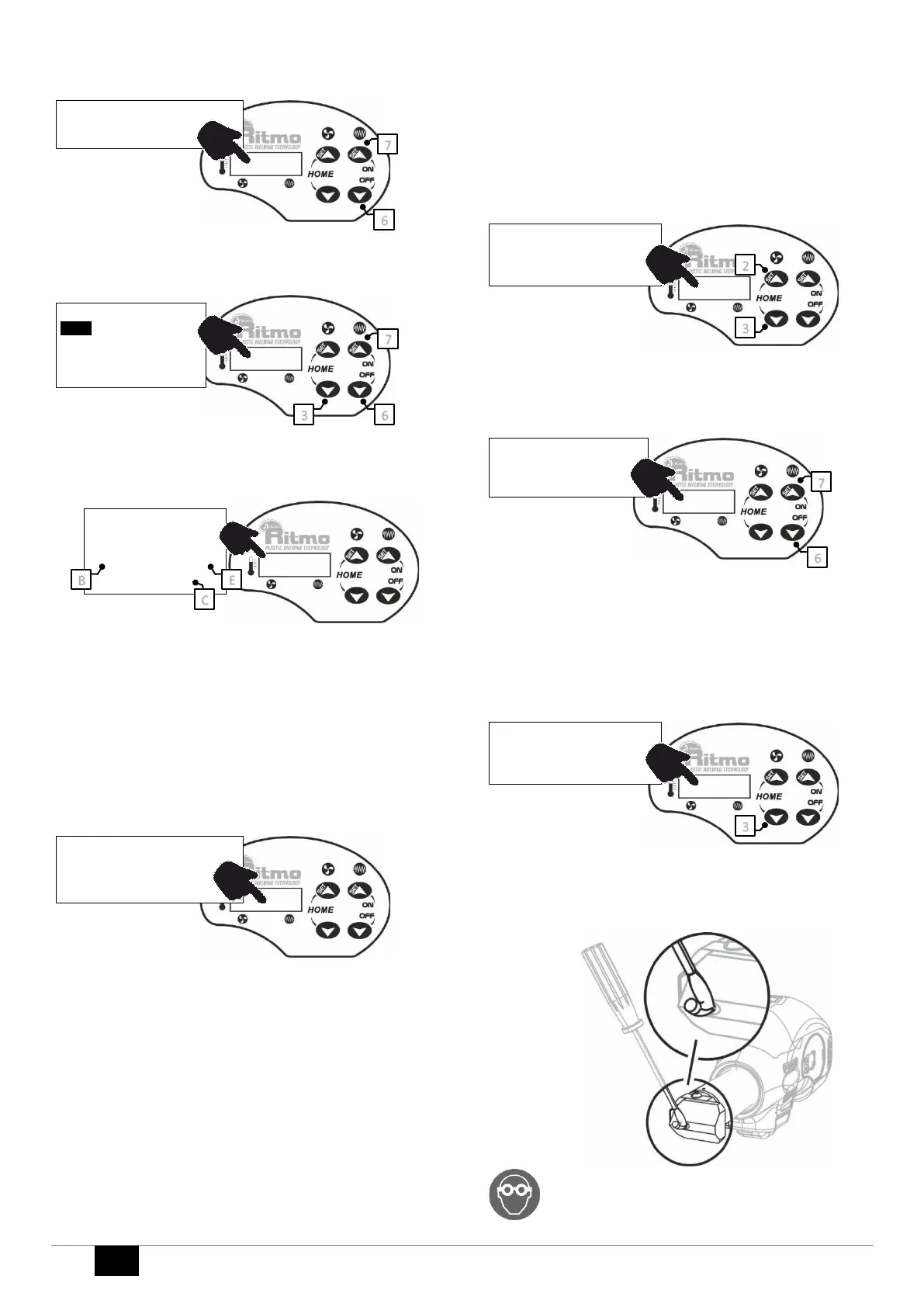 Attenzione! Utilizzare occhiali di sicurezza durante le