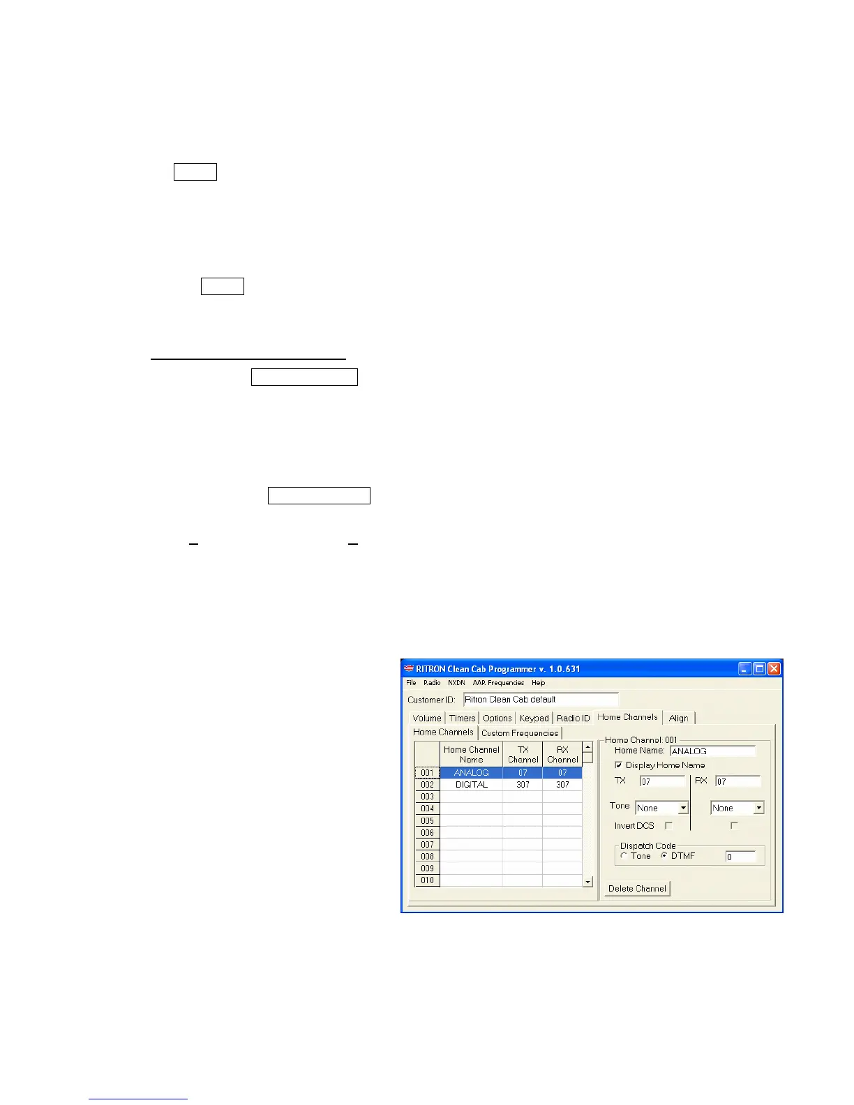 from the AAR Table or from the Custom Frequency list. Home Channels can also be programmed for
