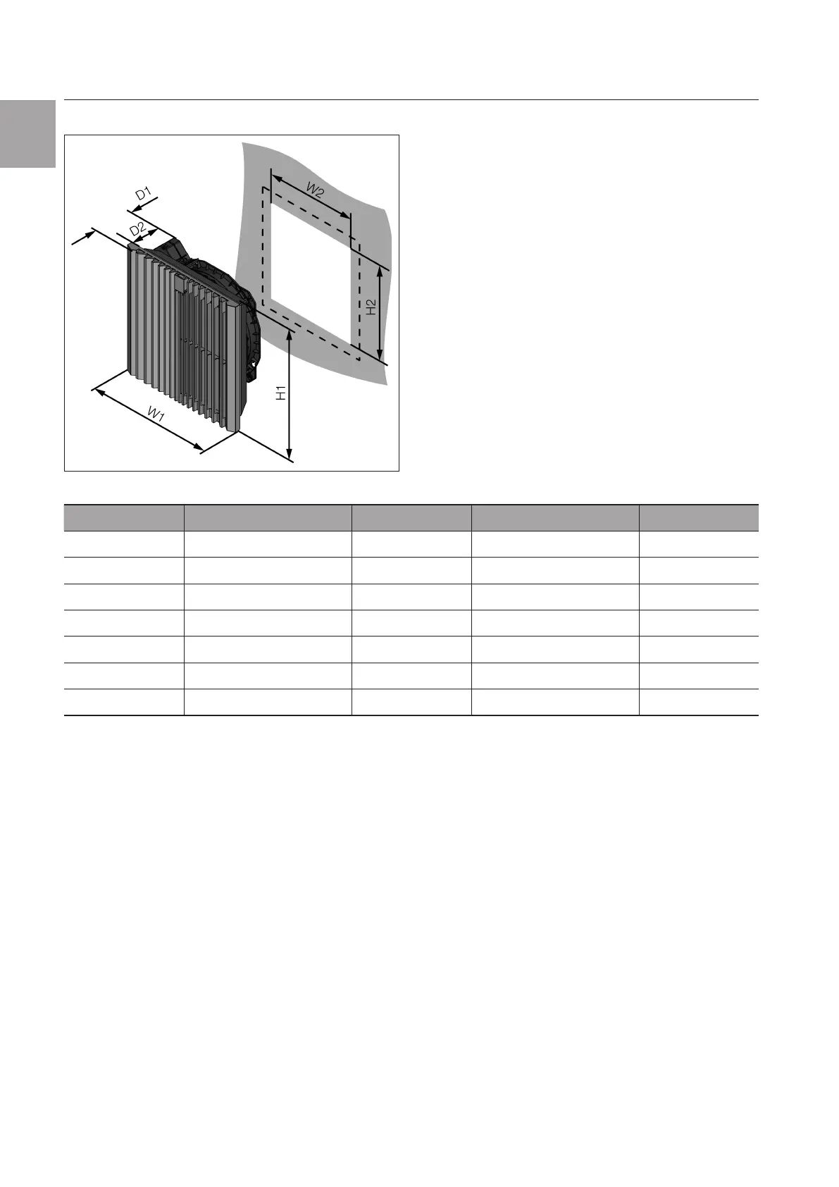 Model No. W1 x H1 mm D1 mm W2 x H2 mm D2 mm