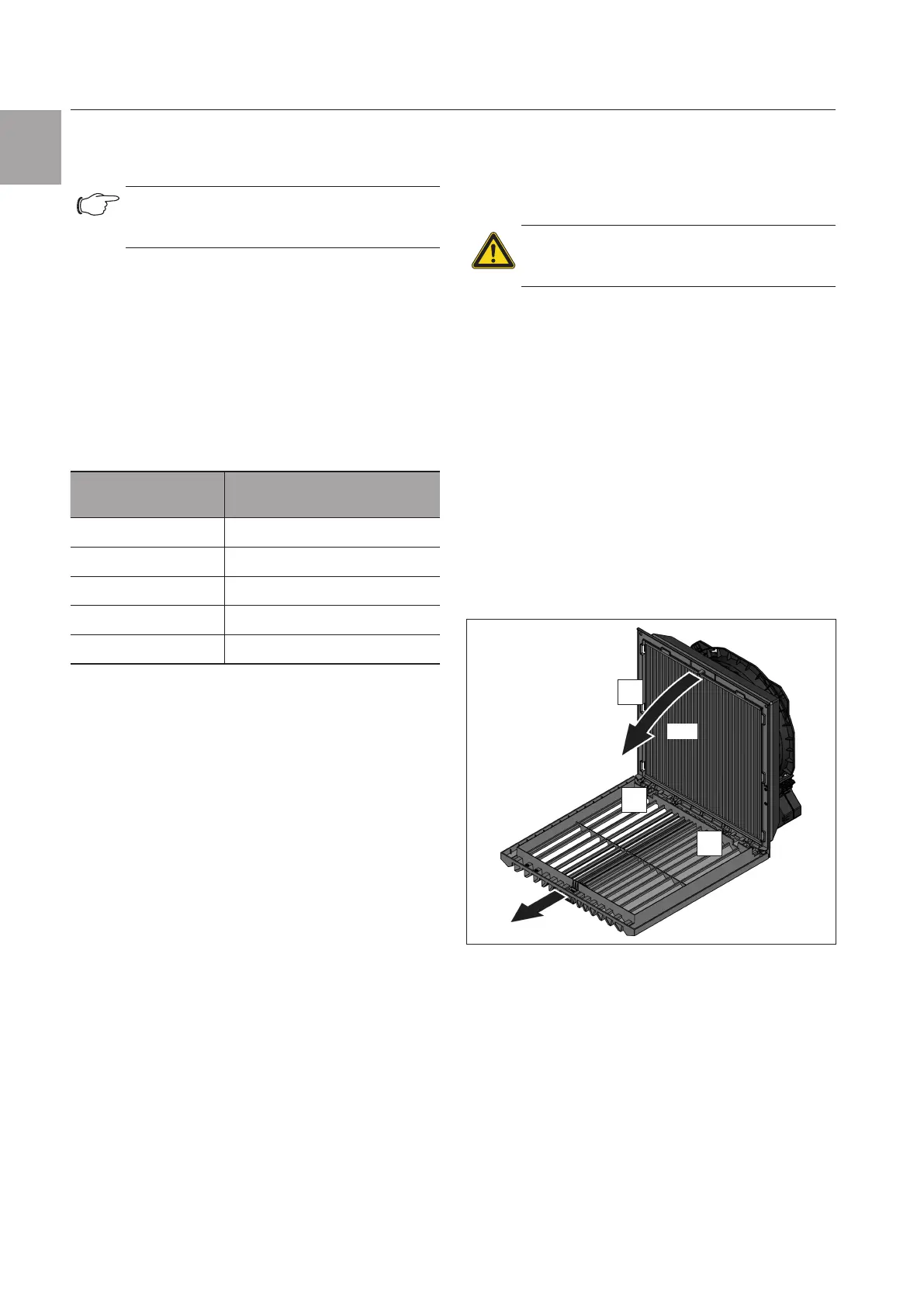 – The fan-and-filter and outlet filter must always be