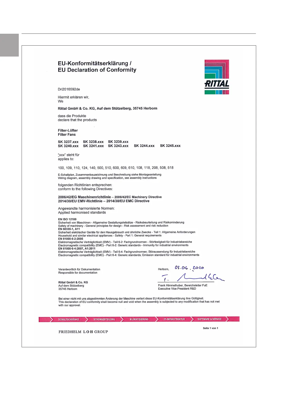 Rittal 3237 Series - Declaration of Conformity
