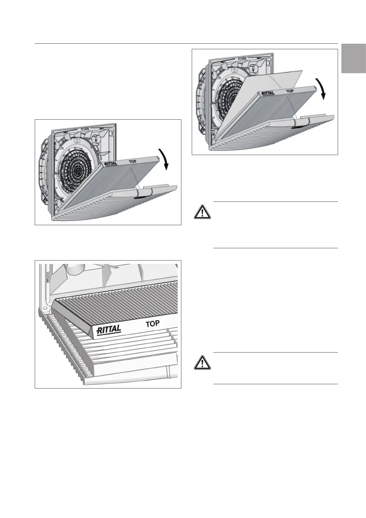 ◾ First press the catch of the louvred grill (Rittal logo)