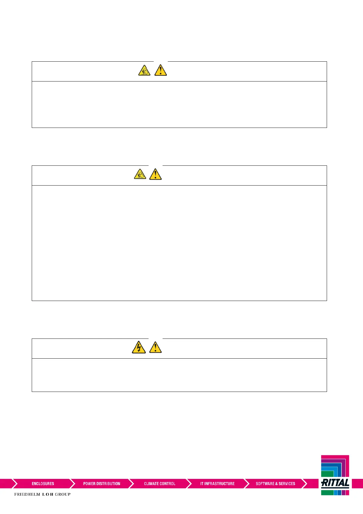 In regards to electrical hazards of rack, the follow warnings must be upheld: