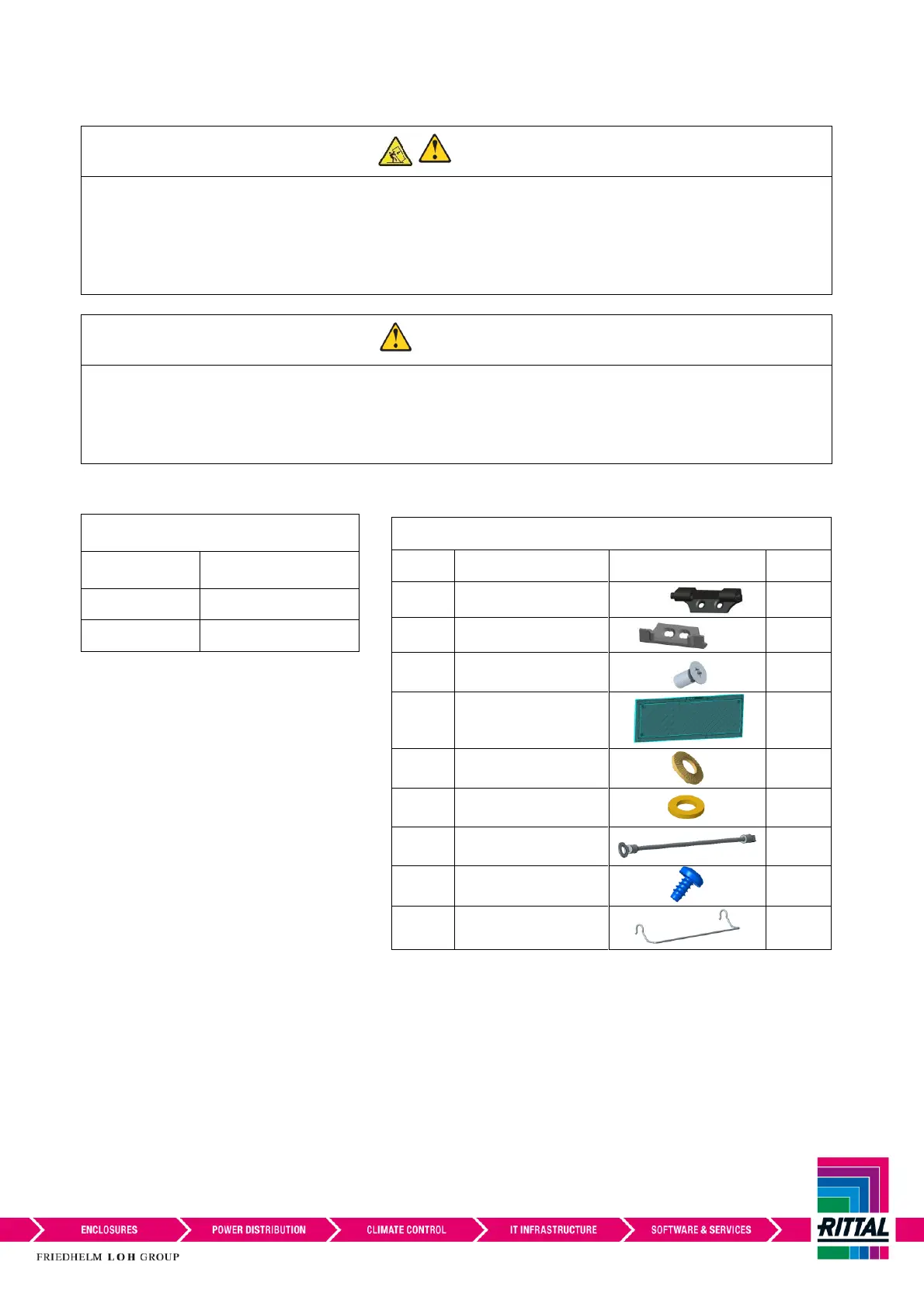 • Due to size and weight of the rack doors and cladding, never attempt to remove or install them by