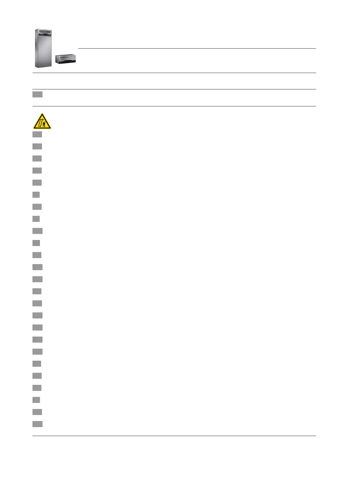 FR Il y a risque de basculement dû au déplacement du centre de gravité, en particulier lors du levage de l'armoire climatisée intégrée