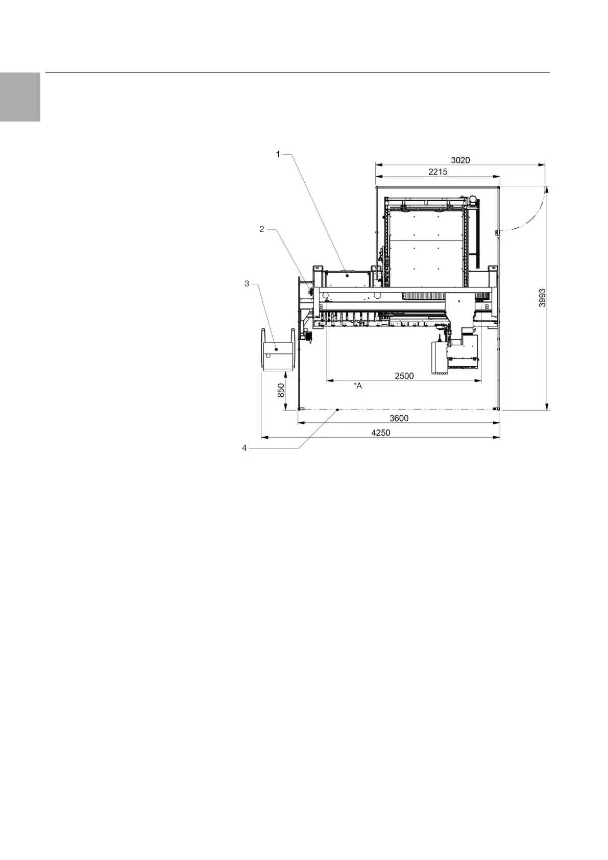 Fig. 24: Perforex BC 1007 HS top view (motorised depth adjustment 2000 mm) with