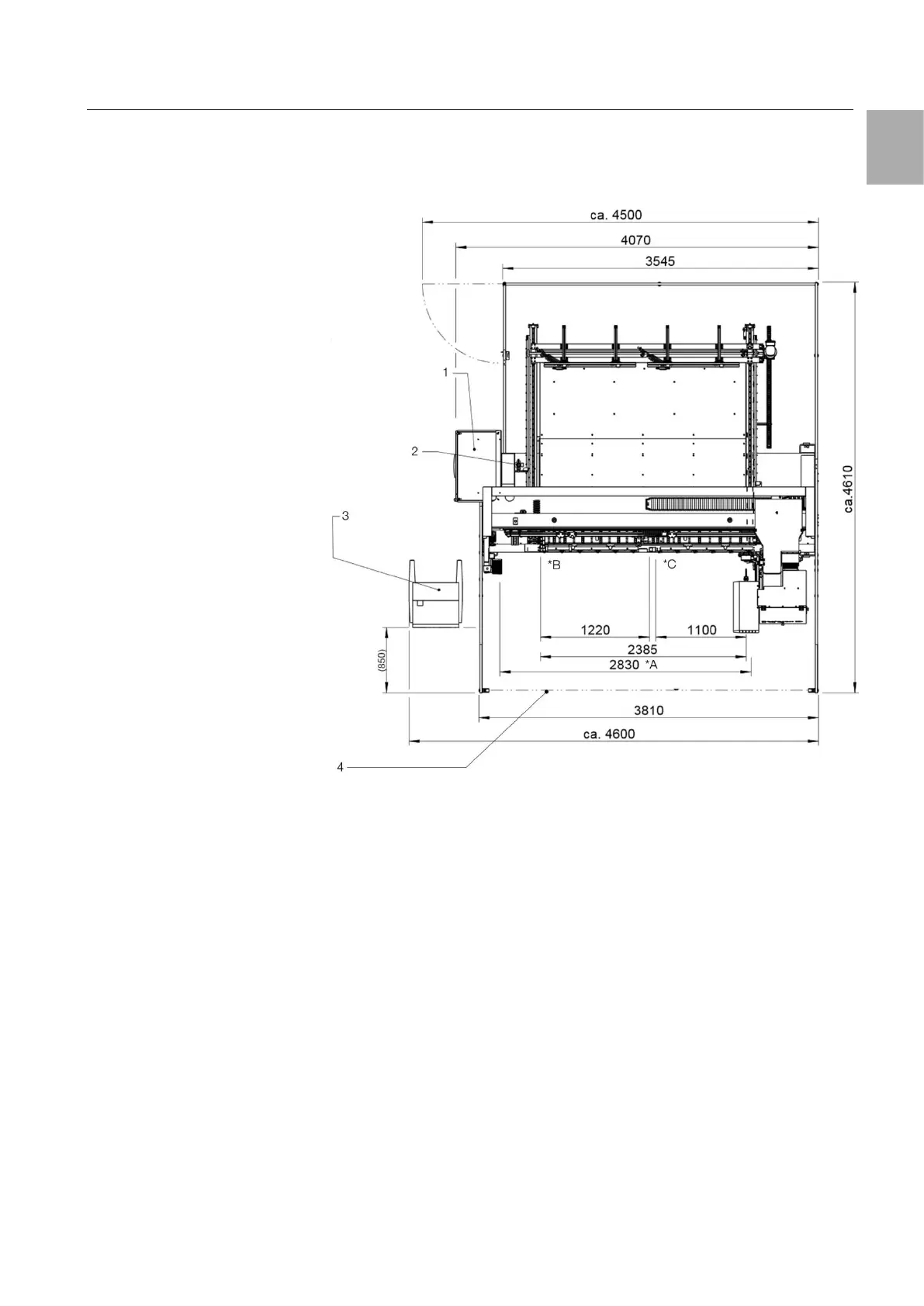 Fig. 25: Perforex BC 1008 HS top view with dimensions