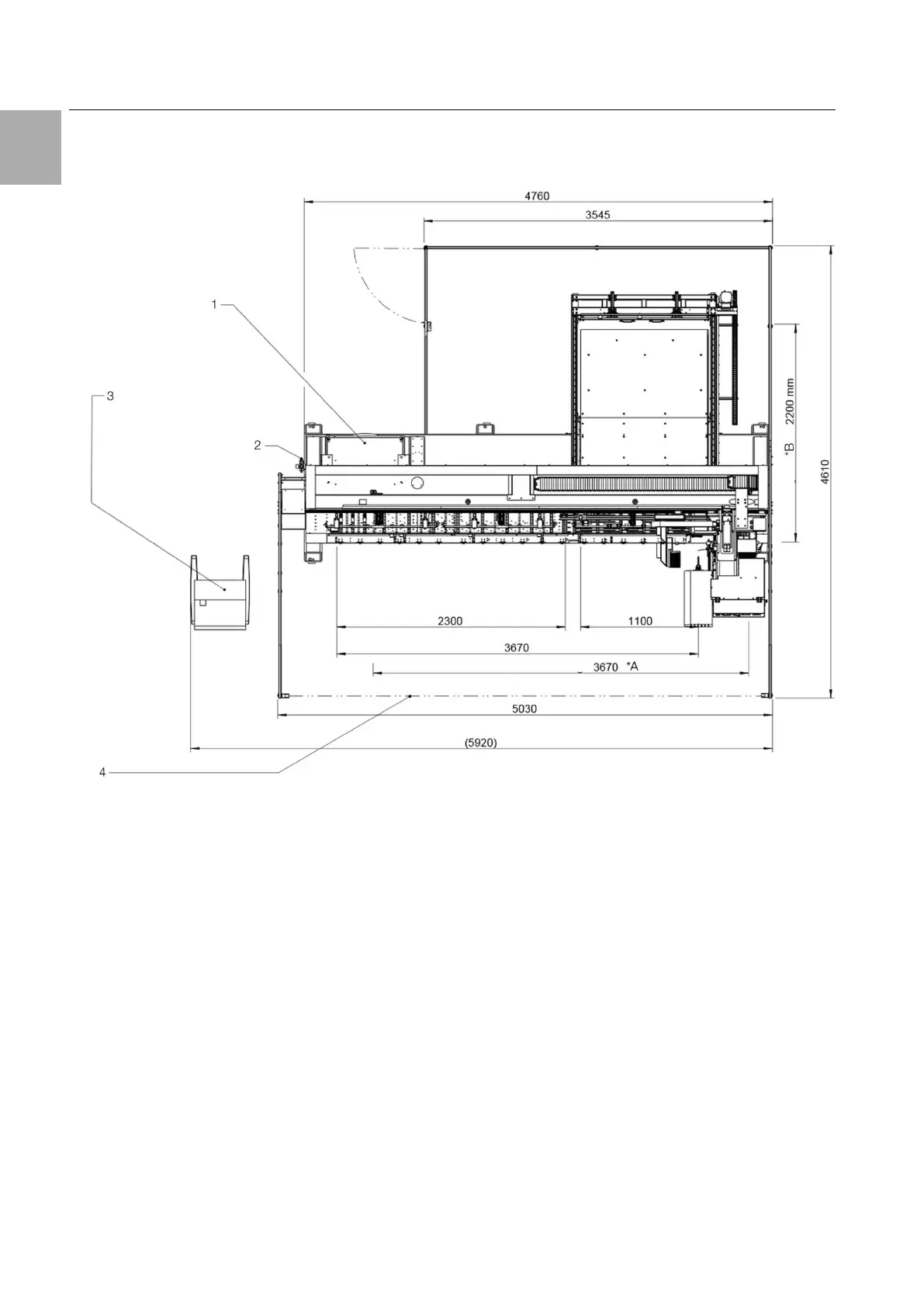 Fig. 26: Perforex BC 2014 HS (single-door) top view with dimensions. External dimen-