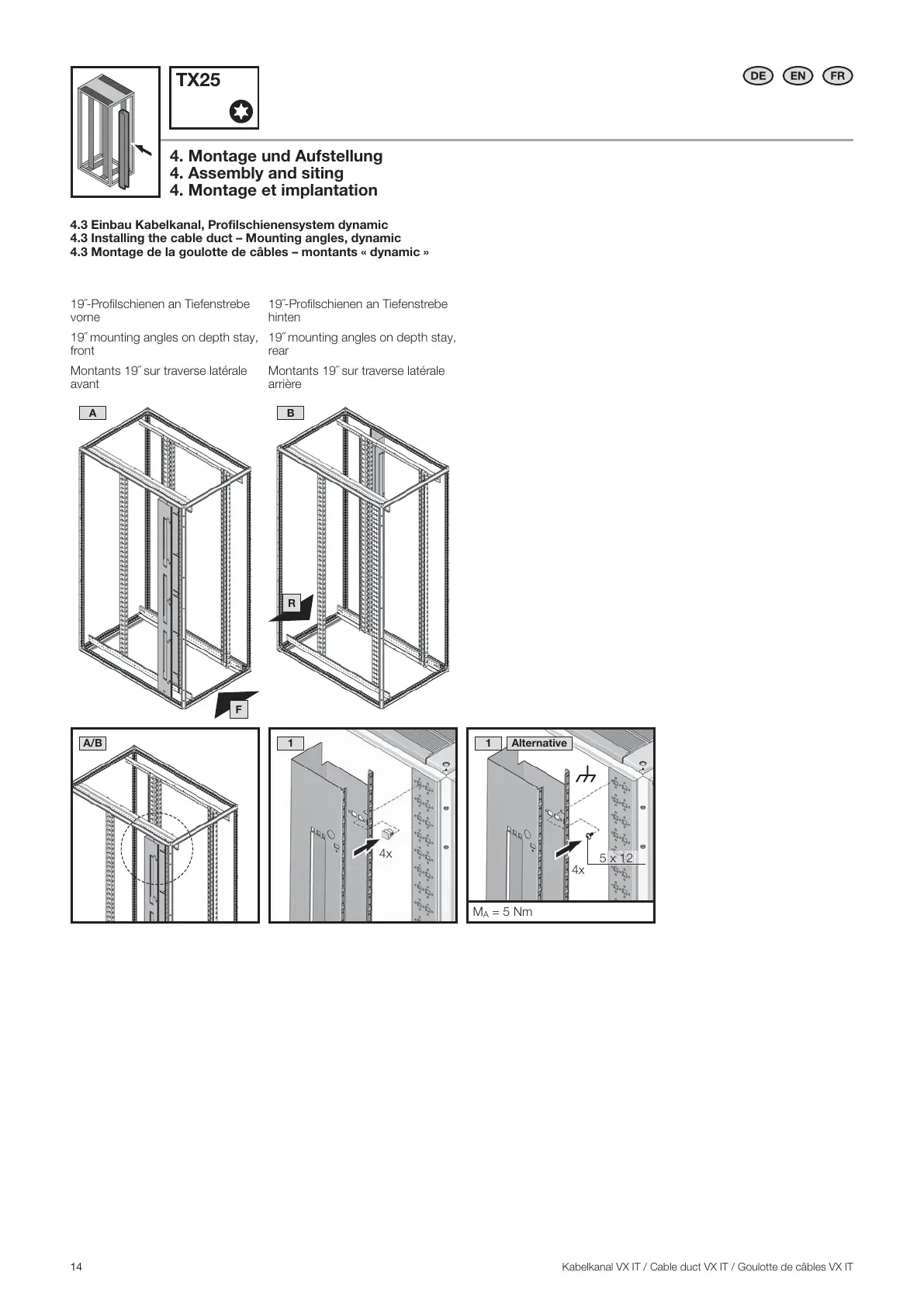 4.3 Installing the cable duct – Mounting angles, dynamic